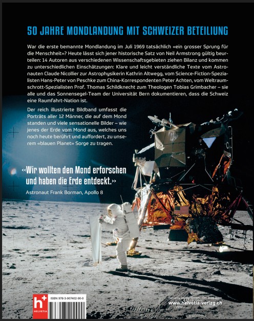 Der reich illustrierte Bildband enthält zudem sämtliche Portraits aller zwölf «Moon walker» sowie viele Bilder, die uns immer wieder staunen lassen und berühren – wie zum Beispiel jenes vom Erdaufgang über dem Mond. Ein Bild, das uns die Sensibilität unseres blauen Planeten zeigt und uns auff ordert, Sorge für ihn zu tragen.