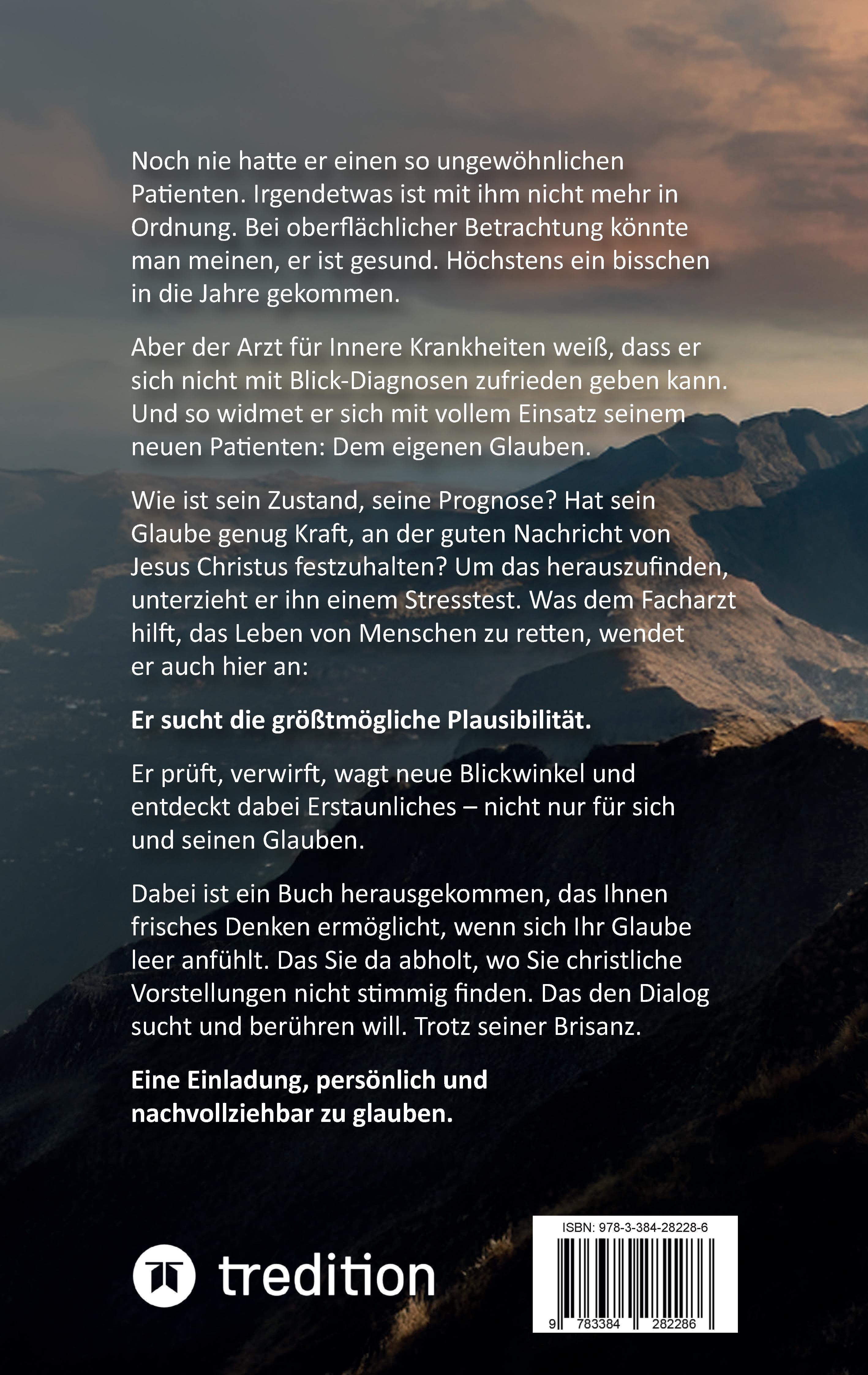 Nur das glauben, was glaubwürdig ist. Wäre gut. Im Fokus: Der christliche Glaube. Als Arzt und Christ hat sich der Autor einer echten Challenge unterzogen: Den eigenen Glauben auf Plausibilität zu prüfen. Hat sein Glaube genug Kraft, an der guten Nachricht von Jesus Christus festzuhalten? Wie im Beruf, so auch hier: Der Facharzt für Innere Krankheiten prüft, verwirft, wagt neue Blickwinkel und entdeckt Erstaunliches. Nicht nur für sich und seinen Glauben.Dabei ist ein Buch herausgekommen, das Ihnen frisches Denken ermöglicht, wenn sich Ihr Glaube leer anfühlt. Das Sie da abholt, wo Sie christliche Vorstellungen nicht stimmig finden. Das den Dialog sucht und berühren will. Trotz seiner Brisanz. Eine Einladung, persönlich und nachvollziehbar zu glauben.