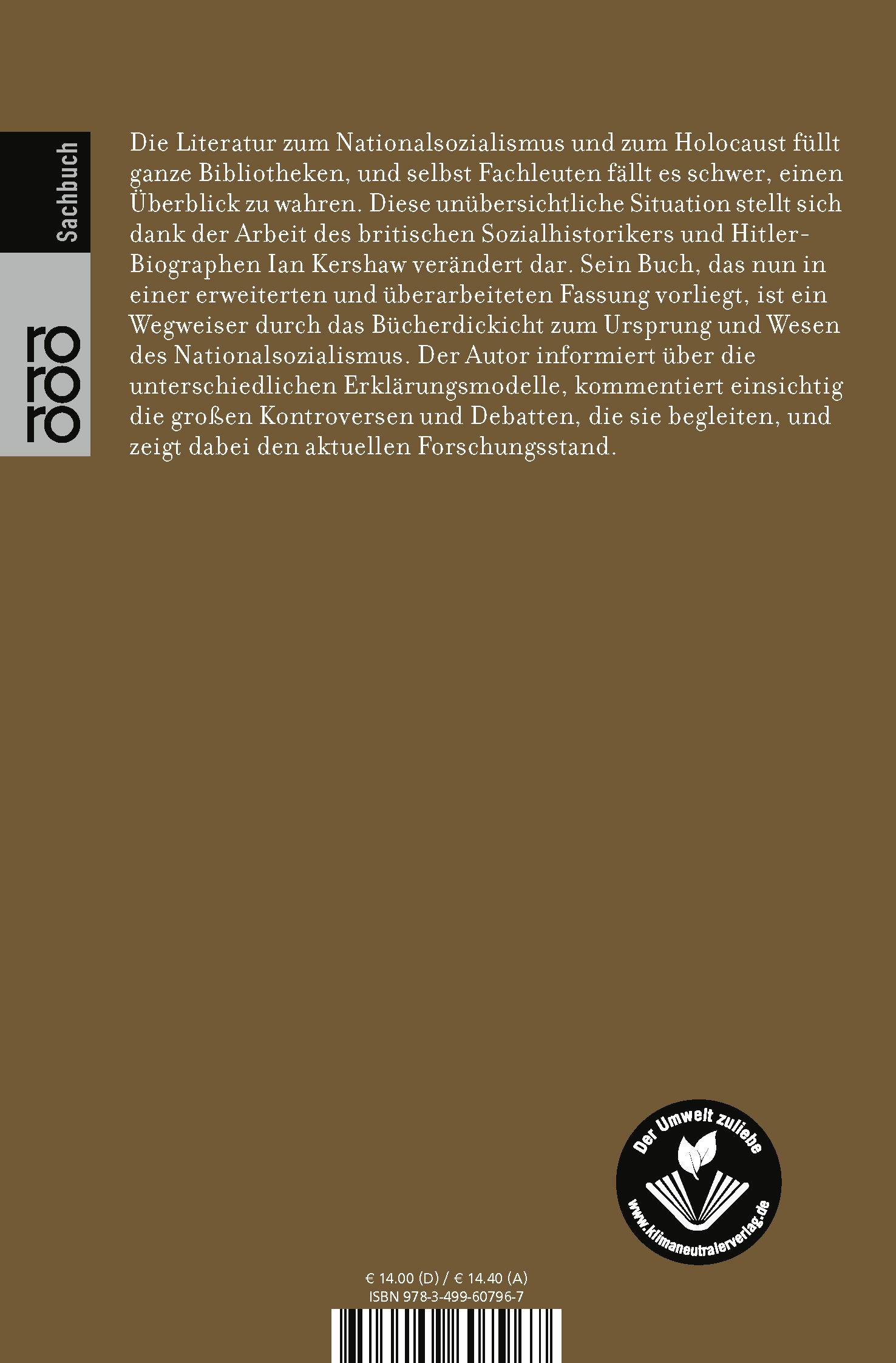 lt;p>Die Literatur zum Nationalsozialismus und zum Holocaust füllt ganze Bibliotheken, und selbst Fachleuten fällt es schwer, einen Überblick zu wahren. Diese unübersichtliche Situation stellt sich dank der Arbeit des britischen Sozialhistorikers und Hitler-Biographen Ian Kershaw verändert dar. Sein Buch, das nun in einer erweiterten und überarbeiteten Fassung vorliegt, ist ein Wegweiser durch das Bücherdickicht zum Ursprung und Wesen des Nationalsozialismus. Der Autor informiert über die unterschiedlichen Erklärungsmodelle, kommentiert einsichtig die großen Kontroversen und Debatten, die sie begleiten, und zeigt dabei den aktuellen Forschungsstand.