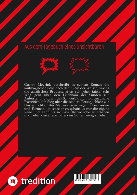 Gustav Meyrink beschreibt in seinem Roman die lautmagische Suche nach dem Stein der Weisen, wie es die asiatischen Bruderschaften seit jeher taten. Sein Weg geht über den Leichnam der Sünden zur Auferstehung durch das Schwert, durch wortmagische Exerzitien den Sieg über die niedere Persönlichkeit zur Unsterblichkeit des Magiers zu erringen. Über Gesten und Formeln, so schreibt er, schafft es nur die eigene Reife und Kenntnis sich ins Überirdische zu erheben und neben den allerschaffenden Göttern ewig zu leben.