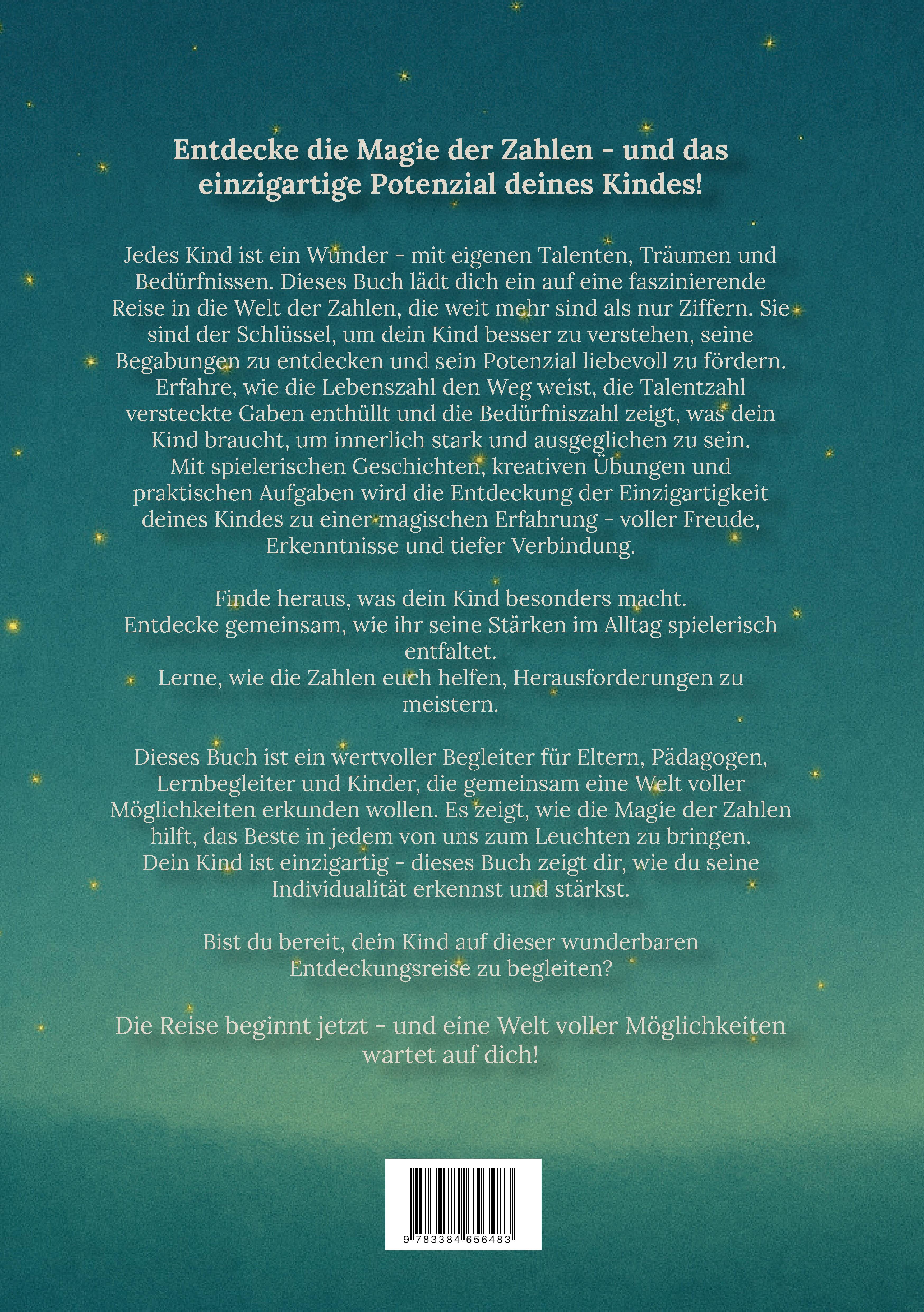 Entdecke die Magie der Kinderseelen - und lerne, ihre Talente zu entfalten!Jedes Kind trägt ein einzigartiges Leuchten in sich. Dieses Buch hilft dir, es zu erkennen. Mit einer warmen Mischung aus inspirierenden Geschichten, liebevoller Numerologie und praktischen Tipps begleitet dich dieser Schatzband dabei, die Stärken, Träume und Herausforderungen deines Kindes besser zu verstehen.Du erfährst, wie die Lebenszahlen 1 bis 9 wie kleine Schlüssel wirken - sie öffnen die Tür zu den individuellen Begabungen, dem inneren Antrieb und den Lernaufgaben deines Kindes. Ob du ein kreatives Freigeistkind, eine stille Beobachterin oder einen leidenschaftlichen Kämpfer an deiner Seite hast: Dieses Buch zeigt dir, wie du Kinder achtsam förderst, sie stärkst und ihnen den Mut gibst, ihren eigenen Weg zu gehen. Das erwartet dich: Zahlreiche kindgerechte Geschichten, die Herz und Fantasie berühren Tiefe Einblicke in die Lebenszahlen und was sie über die Persönlichkeit verraten Praktische Tipps und Anregungen für Eltern, Pädagog:innen und alle, die Kinder begleiten Ein liebevoller Begleiter, um Kinder in ihrer Einzigartigkeit zu feiern und sie strahlen zu lassenDieses Buch ist nicht nur ein Ratgeber - es ist eine Einladung, gemeinsam zu staunen, zu lachen, zu lernen und mit Freude die Wunder des Heranwachsens zu begleiten. Für alle, die Kinder nicht nur sehen, sondern wirklich verstehen wollen.