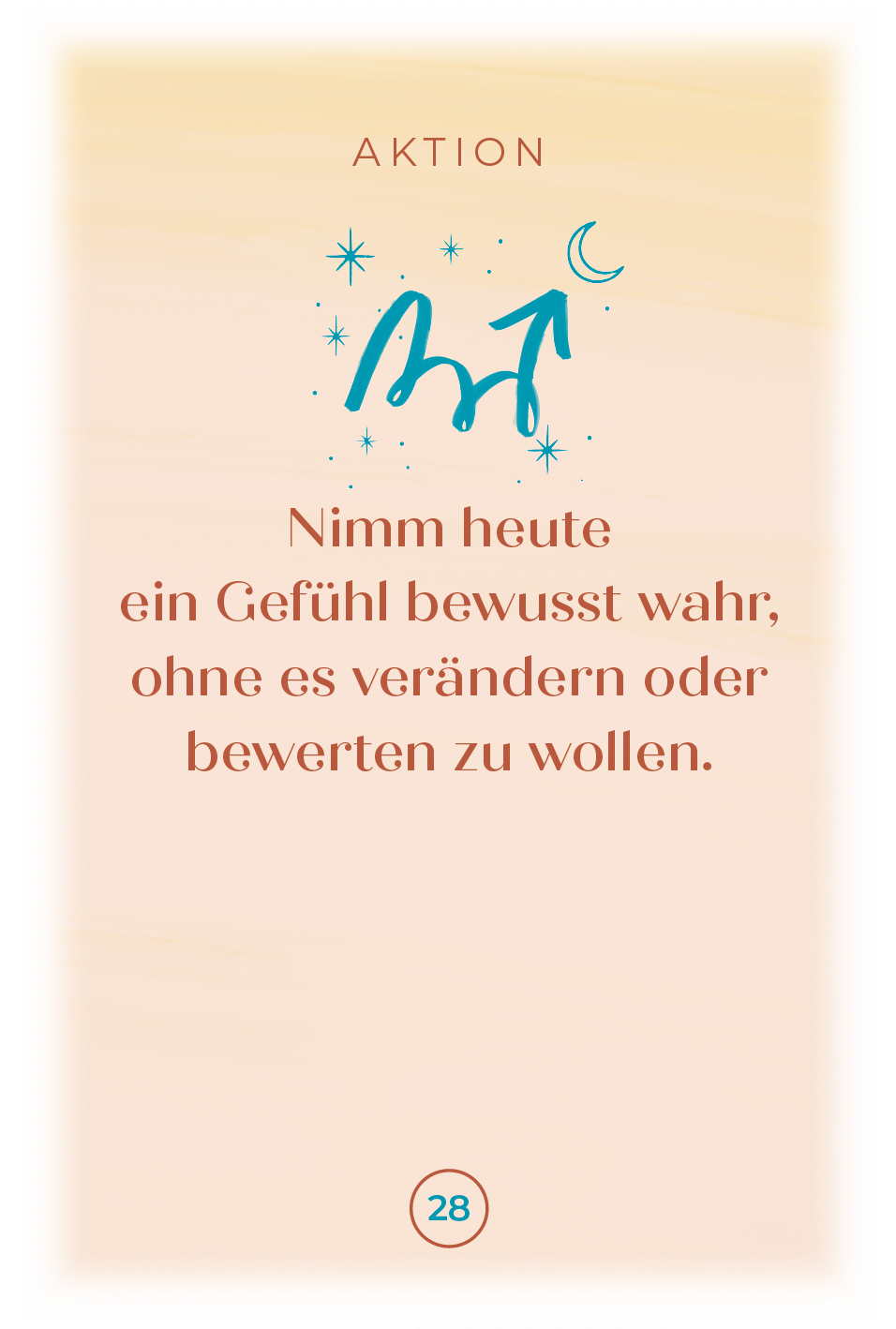 - Aktionskarten:Kleine Tages-Challenges helfen dir, Grenzen zu setzen, "Nein" zu sagen und dich selbst wieder mehr in den Mittelpunkt zu stellen.