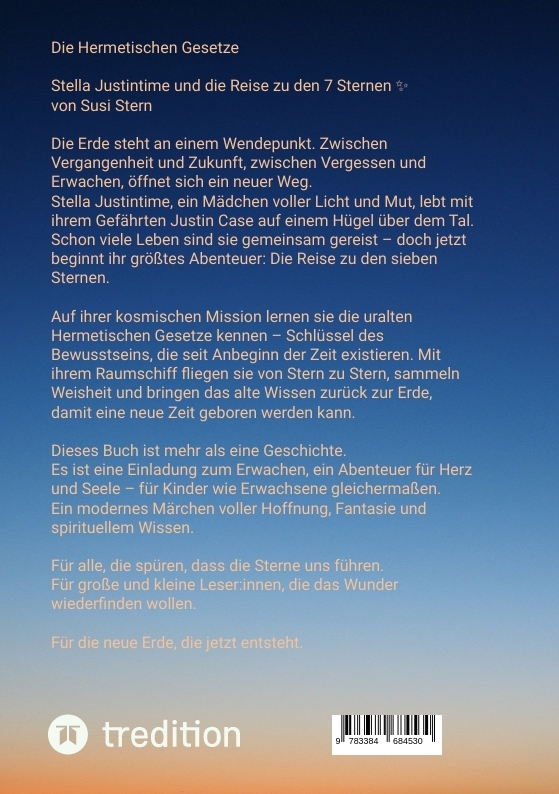 „Wahrheit ist der Kompass, Mut der Antrieb, und Liebe die Kraft, die alle Dimensionen verbindet.“ Susi Stern, geboren am 28. Mai 1968 und zuhause in der Nähe von Baden-Baden, schreibt seit ihrer Kindheit „dem Teufel die Ohren weg“, wie ihre Großmutter es nannte. Worte waren für sie schon immer ein Weg, das Unsichtbare sichtbar zu machen – mit Fantasie, Tiefgang und einem Augenzwinkern. Mit ihrer Buchreihe „Stella Justintime und ihre Abenteuer mit Justin Case“ erschafft sie Geschichten, die in der ganzen Galaxis spielen – aber auch auf der Erde. Zwischen Raumreisen, Erkenntnissen und ganz realen Herausforderungen bewegen sich ihre Figuren durch ein Universum voller Geheimnisse, Prüfungen und Wunder. Im Zentrum steht der galaktische Kodex – eine innere Haltung, die Wahrheit, Mut und Liebe zur Richtschnur macht. Im echten Leben ist Susi als Special Agent im Marketing und Content Creator unterwegs. Sie entwickelt Inhalte mit Substanz – klar, kreativ und bewusst. Auf Rumble und Telegram teilt sie unter dem Namen Stella Justintime Videos, die inspirieren, aufklären und neue Perspektiven eröffnen. Susi Stern erzählt Geschichten, die verbinden – zwischen Welten, Menschen und Ideen. Ihre Mission: Den Funken in anderen zu entzünden.