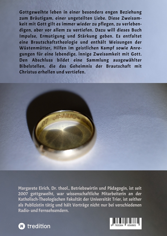 | Schlagworte | Braut Christi Theologie • Christusnachfolge • Exerzitien • Gelübde • Gottgeweihte • Gottgeweihtes Leben • Nachfolge • Theologie zur Brautschaft |