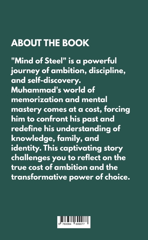 Mind of Steel is a powerful coming-of-age story set in Cairo in the mid-20th century. It follows Muhammad, a boy shaped by his father's strict discipline and high expectations. Trained to memorize the Quran and master ancient knowledge, he grows up in a world where perfection is demanded at all costs. When his father dies, Muhammad's world collapses-until a scholarship takes him to America. There, he faces culture shock and the challenge of independent thinking, forcing him to reconcile tradition with modernity, duty with freedom, and knowledge with true understanding.