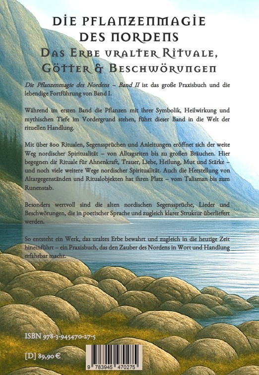 Band II vertieft den Weg in die nordische Ritual- und Pflanzenwelt. Im Mittelpunkt stehen die praktische Ritualarbeit und die lebendige Magie: von altüberlieferten Bräuchen bis zu modernen Anwendungen. Zahlreiche Rituale, Segensworte und Zauberformeln sind thematisch geordnet – für Schutz, Heilung, Liebe, Übergänge, Ahnenarbeit und innere Sammlung. Detaillierte Anleitungen zu Räucherungen, Talismanen, Runen und Naturmaterialien verbinden sich mit poetischen Texten, die das Unsichtbare greifbar machen.