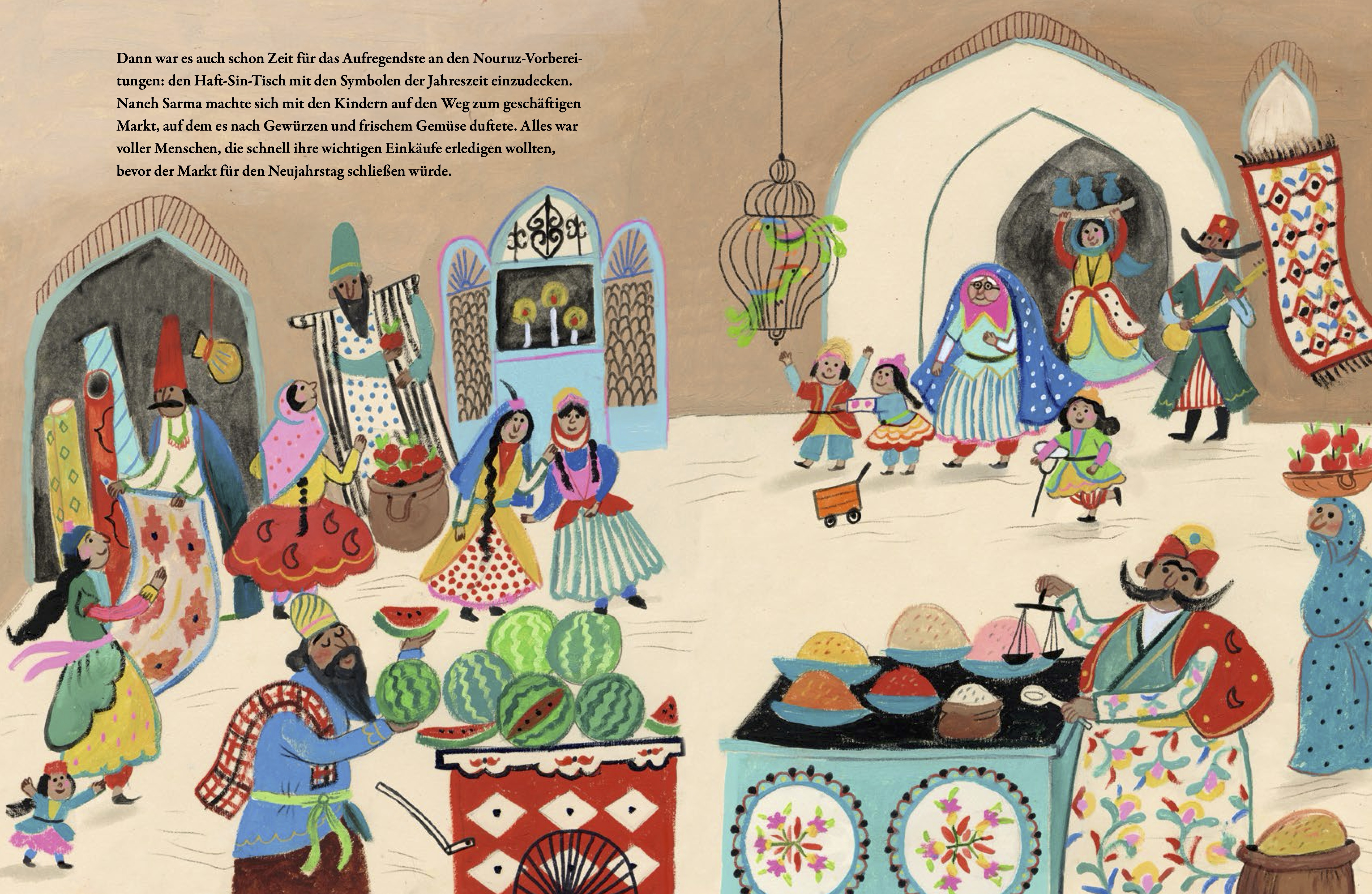 | Schlagworte | Bilderbuch zum Frühling • Farbenfroh illustriertes Bilderbuch • Geschichte von Nane Sarma • iranisches Neujahr • Neubeginn zu Silvester • Neujahr feiern • Nouruz Sage • Nowruz Fest • Persisches Neujahr • Tradition Naneh Sarma |