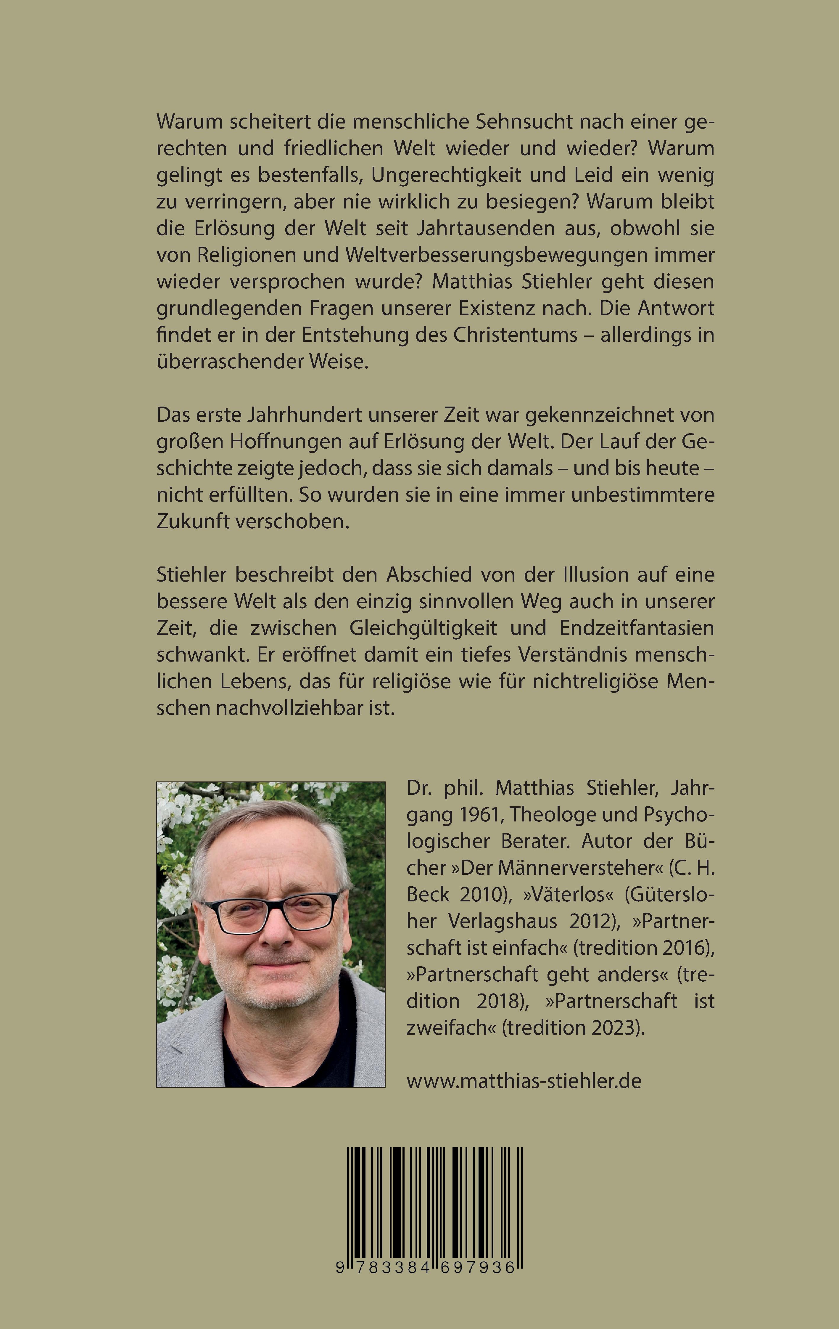 Warum scheitert die menschliche Sehnsucht nach einer gerechten und friedlichen Welt wieder und wieder? Warum gelingt es bestenfalls, Ungerechtigkeit und Leid ein wenig zu verringern, aber nie wirklich zu besiegen? Warum bleibt die Erlösung der Welt seit Jahrtausenden aus, obwohl sie von Religionen und Weltverbesserungsbewegungen immer wieder versprochen wurde? Matthias Stiehler geht diesen grundlegenden Fragen unserer Existenz nach. Die Antwort findet er in der Entstehung des Christentums – allerdings in überraschender Weise.
