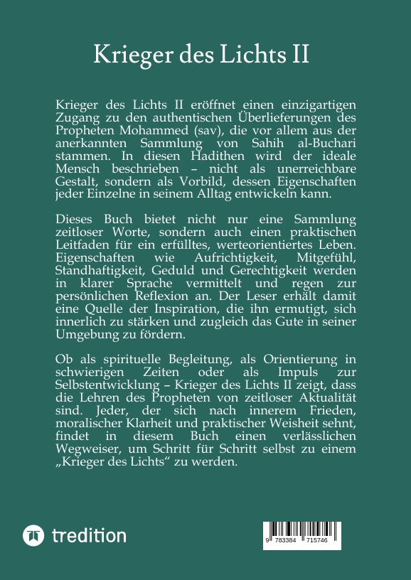 | Schlagworte | Hadithe • Idealbild des Menschen • Inspiration für den Alltag • Islamische Weisheit • moralische Werte • Prophetenüberlieferungen • Sahih al-Buchari • Selbstverbesserung • Spirituelle Orientierung |