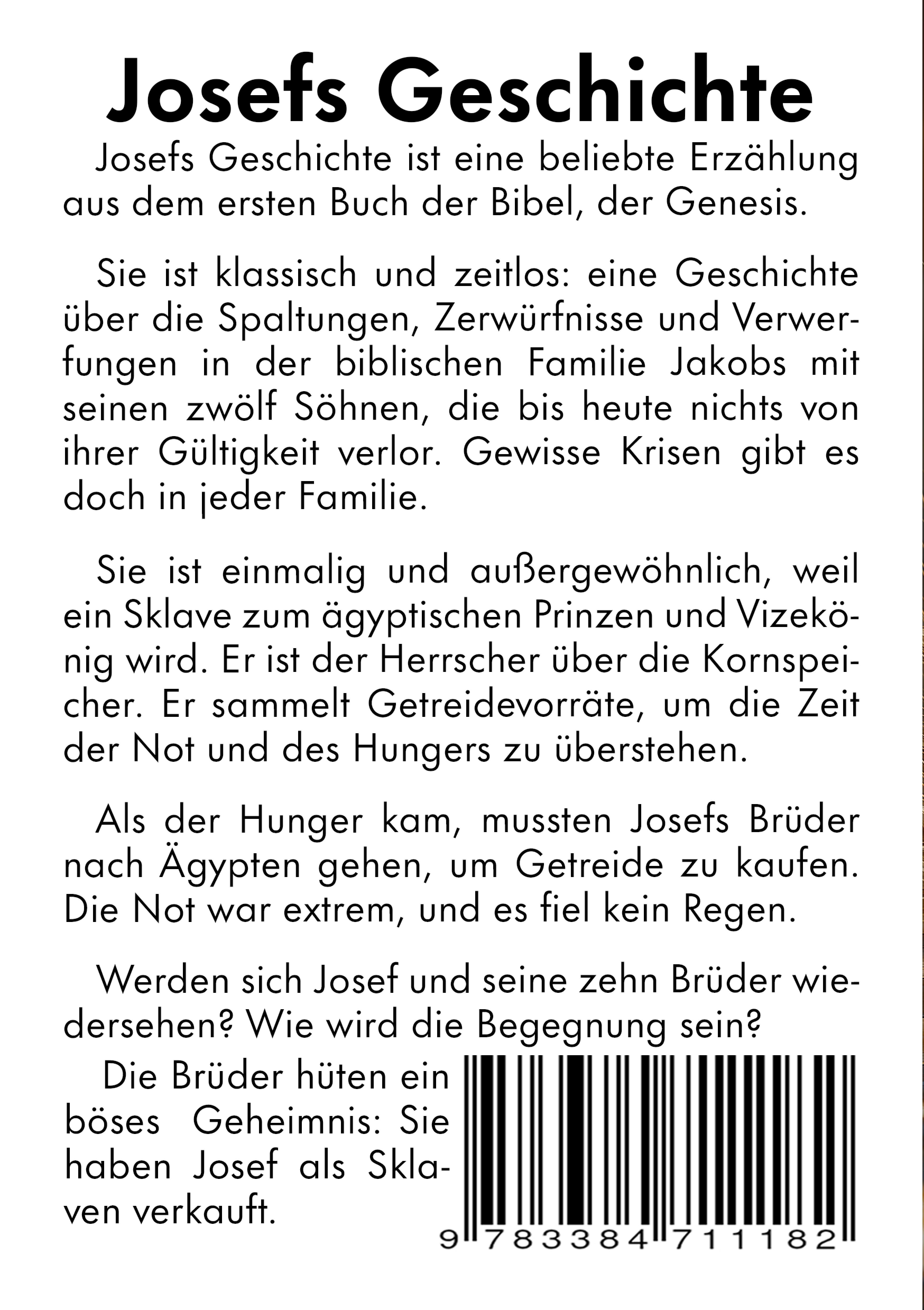 | Schlagworte | Ägypten • Bauern • Bibel • Familie • Genesis • Geschichte • Gott • Hunger • Jakob • Josef • König • Machtmissbrauch • Mordplan • Mordversuch • Not • Schach • Spaltung • Traum • Versöhnung |