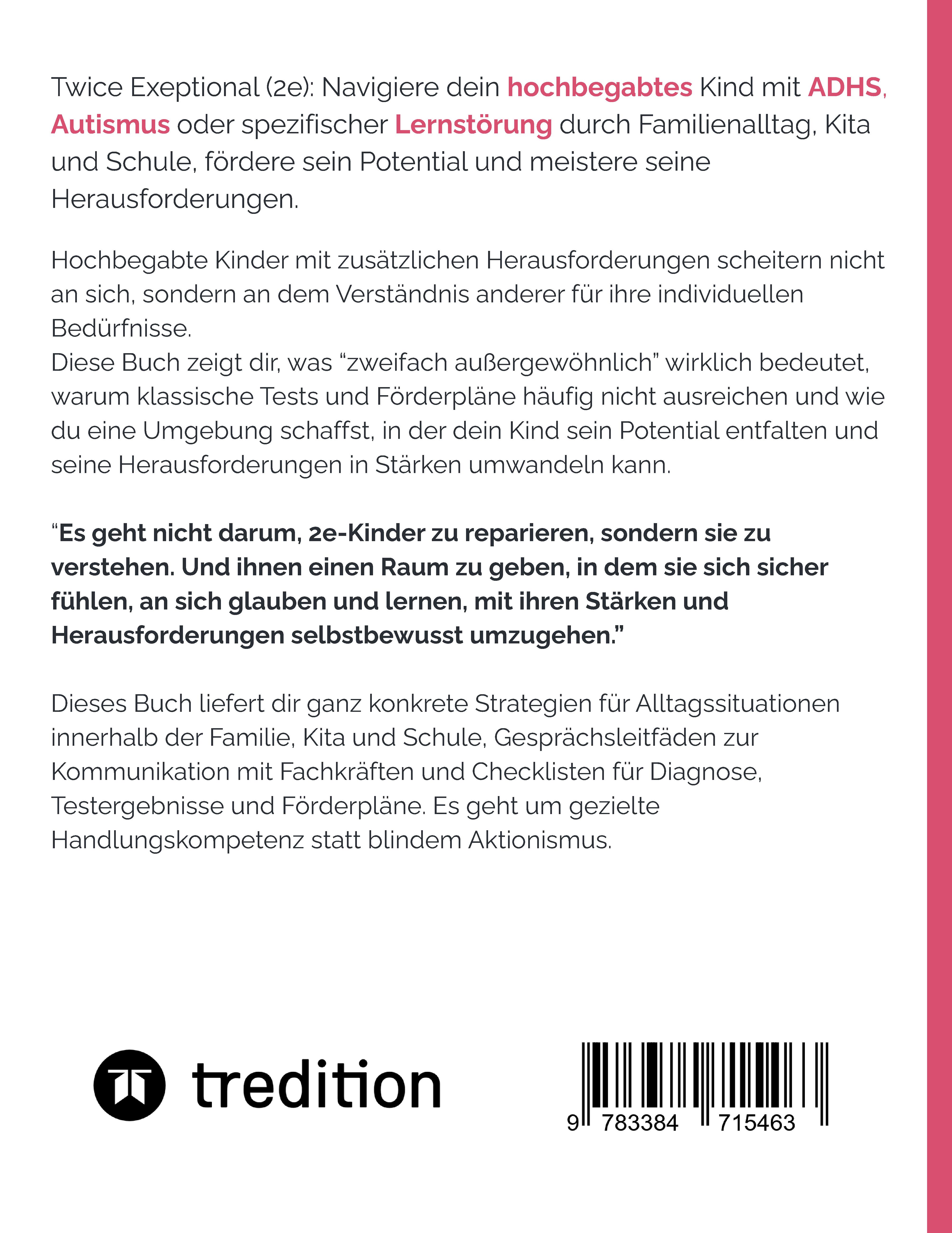 | Schlagworte | ADHS • ASS • Autismus • Dyskalkulie • Elternratgeber • Hochbegabung • Lernstörung • Lese-Rechtsschreib-Schwäche • LRS • Twice Exeptional • Underachievement |