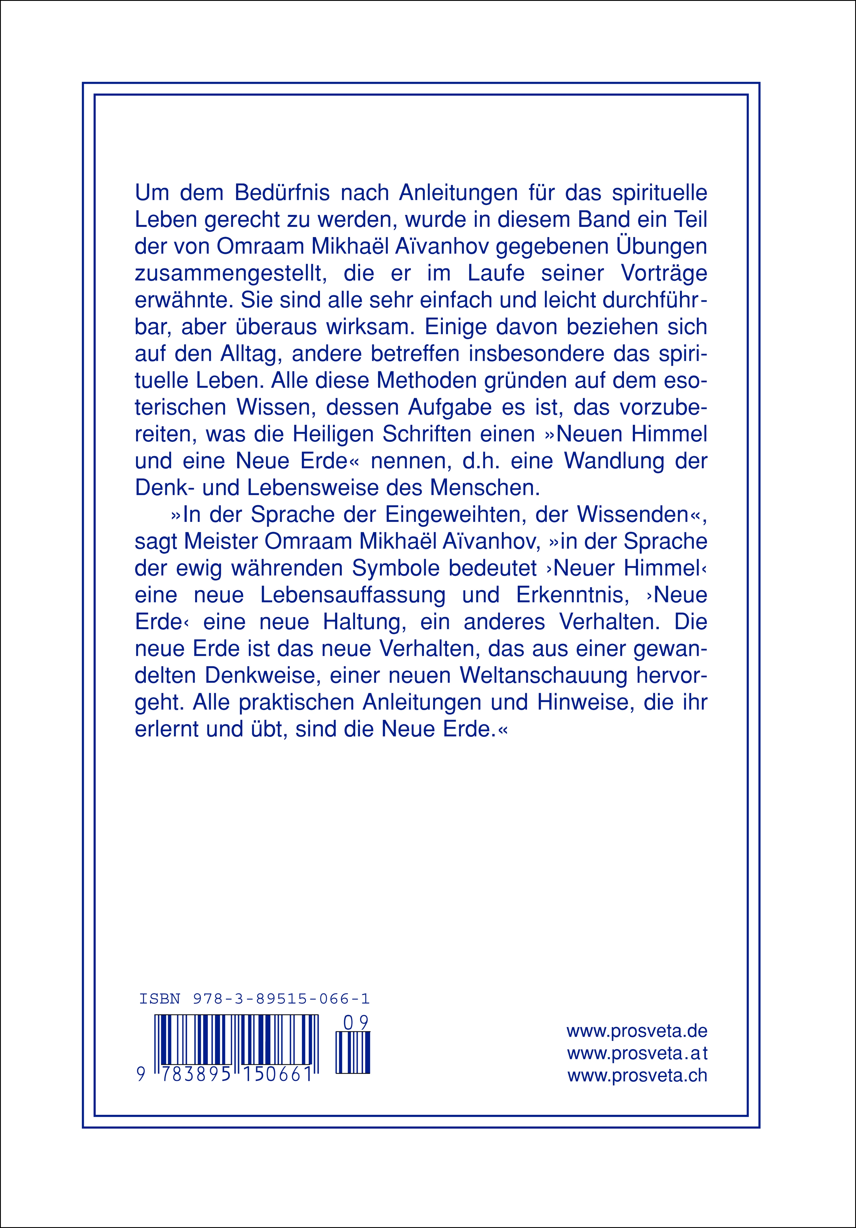 "In der Sprache der Eingeweihten, der Wissenden", sagt Meister Omraam Mikhael Aivanhov, "in der Sprache der ewig währenden Symbole, bedeutet 'Neuer Himmel' eine neue Lebensauffassung und Erkenntnis, 'Neue Erde' eine neue Haltung, ein anderes Verhalten. Die Neue Erde ist das neue Verhalten, das aus einer gewandelten Denkweise, einer neuen Weltanschauung hervorgeht. Alle praktischen Übungen und Hinweise, die Ihr erlernt und übt, sind die Neue Erde."