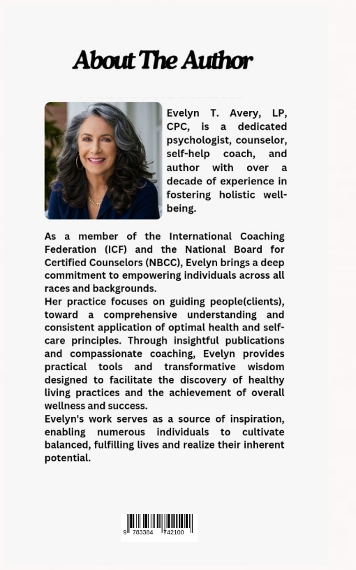 Evelyn T. Avery, LP, CPC, ist eine engagierte Psychologin, Beraterin, Selbsthilfe-Coach und Autorin mit über einem Jahrzehnt Erfahrung in der Förderung ganzheitlichen Wohlbefindens.