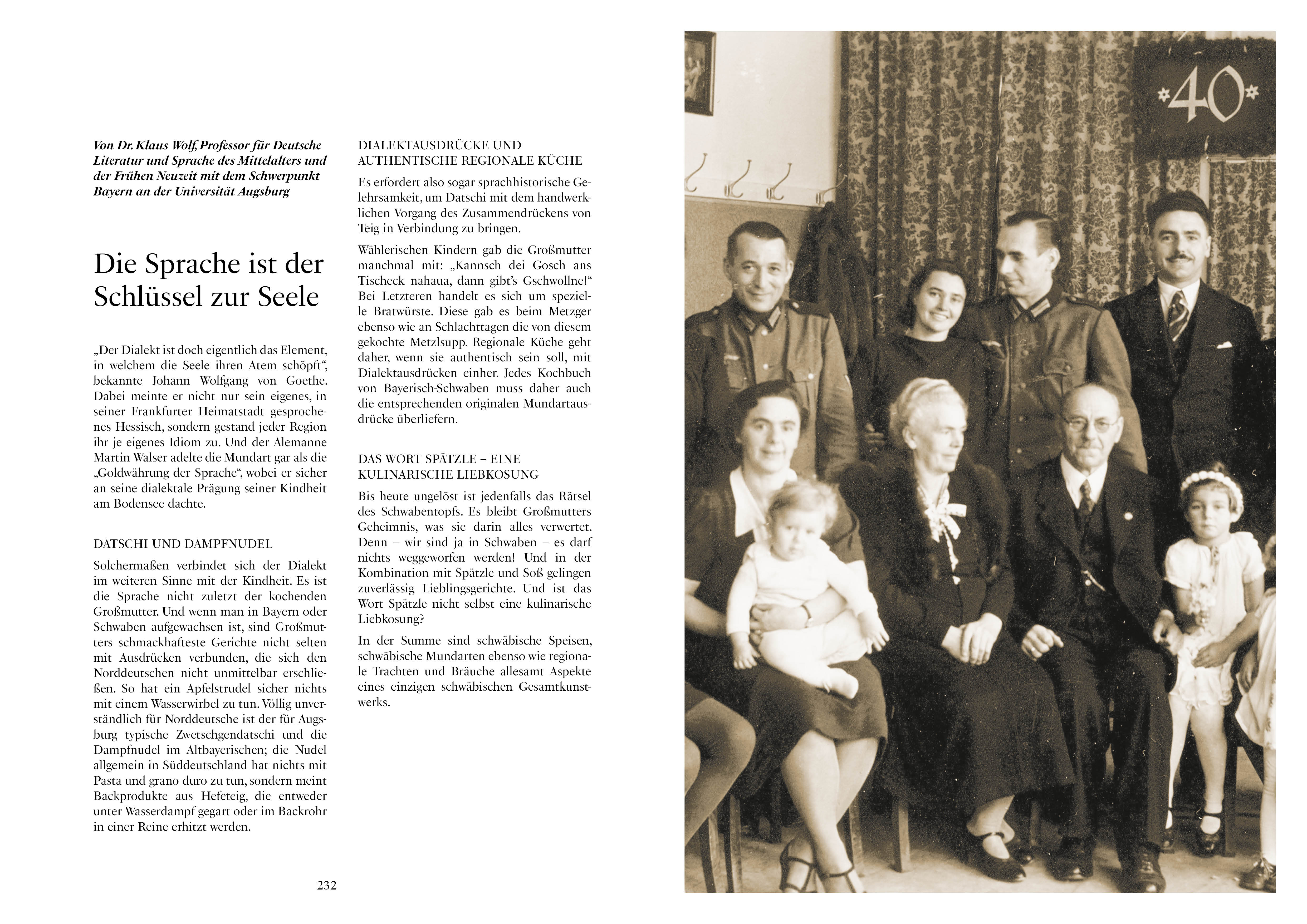 Ein Lese- und Kochbuch aus Bayerisch-Schwaben – mit echten Geschichten, traditionellen Rezepten, biografischen Einblicken und fundierten Beiträgen von Fachleuten. Der Duft von Röstzwiebeln, frisch gebackenem Brot und goldbraunen Dampfnudeln mit Vanillesoße – das sind Gerüche, die Erinnerungen wecken. Dieses Buch führt zurück in die Küchen der Kindheit zwischen 1930 und 1960: in eine Zeit, in der auf Holzherden gekocht, am großen Tisch gemeinsam gegessen und erzählt wurde.