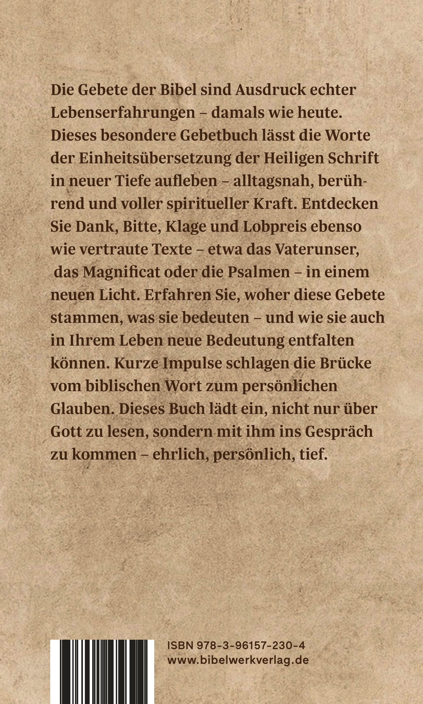 Die Gebete der Bibel sind Ausdruck echter Lebenserfahrungen – damals wie heute. Dieses besondere Gebetbuch lässt die Worte der Einheitsübersetzung der Heiligen Schrift in neuer Tiefe aufleben – alltagsnah, berührend und voller spiritueller Kraft. Entdecken Sie Dank, Bitte, Klage und Lobpreis ebenso wie vertraute Texte – etwa das Vaterunser, das Magnificat oder die Psalmen – in einem neuen Licht. Erfahren Sie, woher diese Gebete stammen, was sie bedeuten – und wie sie auch in Ihrem Leben neue Bedeutung entfalten können. Kurze Impulse schlagen die Brücke vom biblischen Wort zum persönlichen Glauben. Dieses Buch lädt ein, nicht nur über Gott zu lesen, sondern mit ihm ins Gespräch zu kommen – ehrlich, persönlich, tief.