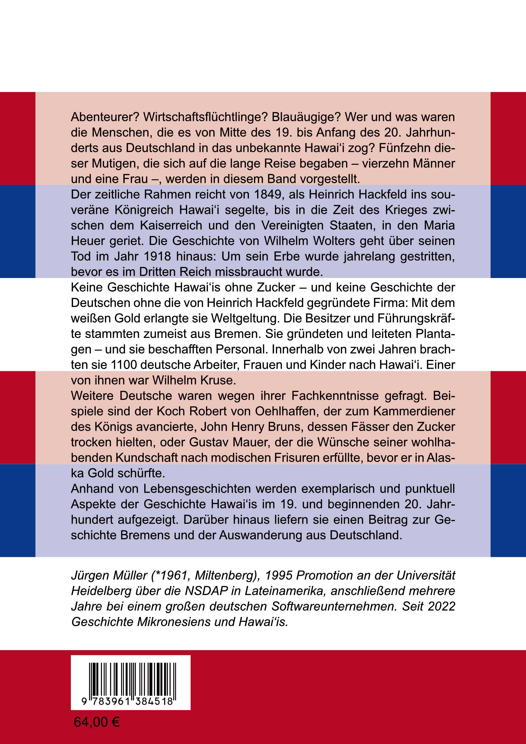 Abenteurer? Wirtschaftsflüchtlinge? Blauäugige? Wer und was waren die Menschen, die es von Mitte des 19. bis Anfang des 20. Jahrhunderts aus Deutschland in das unbekannte Hawai'i zog? Fünfzehn dieser Mutigen, die sich auf die lange Reise begaben – vierzehn Männer und eine Frau –, werden in diesem Band vorgestellt.
