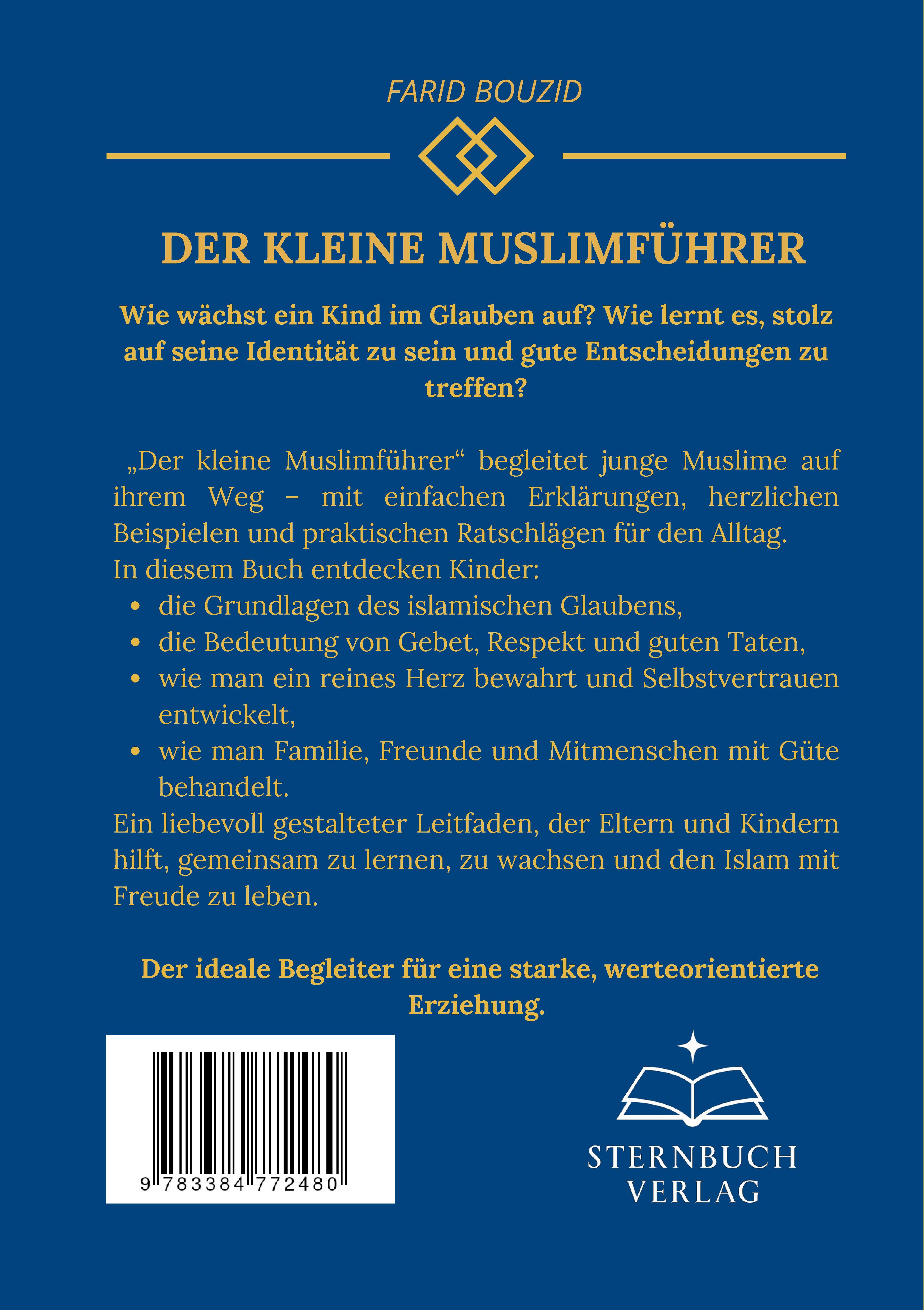 "Der kleine Muslimführer" ist ein liebevoll gestaltetes Kinderbuch, das jungen Muslimen hilft, ihren Glauben besser zu verstehen und starke moralische Werte zu entwickeln. Mit einfachen Erklärungen, alltagsnahen Beispielen und kindgerechten Übungen lernen Kinder die Bedeutung von Gebet, Respekt, guten Taten und innerer Stärke. Dieses Buch unterstützt Eltern dabei, ihre Kinder im Islam achtsam, positiv und selbstbewusst zu erziehen. Ein idealer Begleiter für alle Familien, die ihren Kindern Orientierung, Charakterbildung und spirituelle Entwicklung vermitteln möchten.Entdecken Sie jetzt diesen wertvollen Leitfaden - und helfen Sie Ihrem Kind, im Glauben, in der Bescheidenheit und im Selbstvertrauen zu wachsen.
