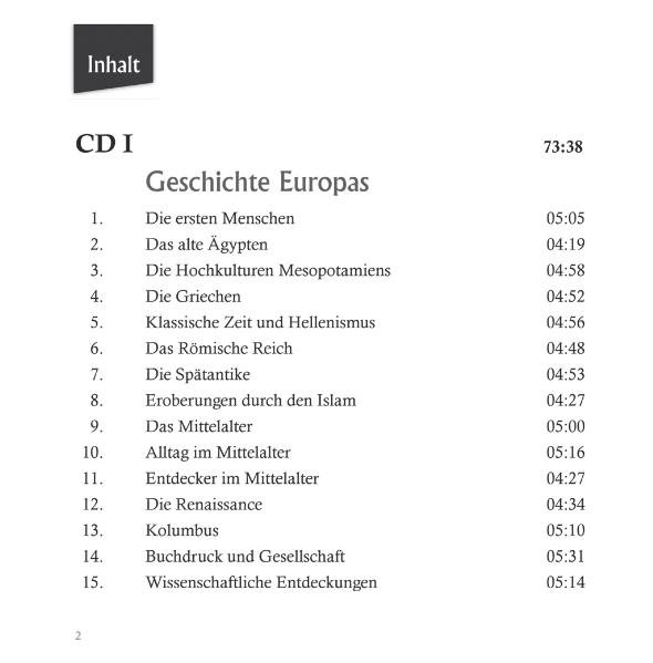 | Schlagworte | Allgemeinbildung • Audio-CD • Audio-CD, Kassette / Sachbücher/Lexika, Nachschlagewerke • AUDIO/Sachbücher/Lexika, Nachschlagewerke • Europa • Europa, Geschichte • Europa, Geschichte; Audio-CDs • Geschichte • Geschichtsdokumentation • Geschichtsdokumentationen (Audio-CDs) • Hörbücher • Kulturgeschichte |
