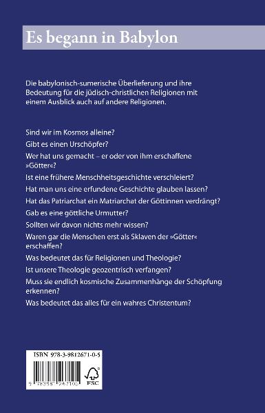 VORWORT 8EINLEITUNG 111. DIE BABYLONISCHE SCHÖPFUNGSGESCHICHTE 252. BABEL UND DIE BIBEL 393. MODERNE TECHNIK IN DER ALTEN BIBEL? 584. WER WAR MARDUK - UND WER WAR TIÂMAT? 675. ZUM SKLAVENTUM ERSCHAFFEN 826. DER MYTHOS VOM MONOTHEISMUS 987. WER IST JAHWEH? WER IST JESU GOTT? 1098. 'DURCHGABEN' - VON DEN GÖTTERN? 1299. DIE GÖTTER SPIELEN SCHACH - WIR STEHEN AUF DEM BRETT 15010. DIE RÜCKKEHR DER GÖTTIN 16511. WARUM GINGEN ALTE HOCHKULTUREN UNTER? 18512. DER UNTERGANG DER LIEBESRELIGIONEN 19413. EIN MÄRCHEN VOM FREIEN WILLEN 20414. SCHLUSSVISION 209NACHWORT 214Anhang 1EINE AUSWAHL DER VIELEN GRAUSAMKEITEN IN DER BIBEL 216Anhang 2EIN ALTÄGYPTISCHER GOTTESVORWURF 243Anhang 3NUMEROLOGIE UND DIE ZAHL 666 244Anhang 4ÜBER 'SCHROTT-DNA' UND ANDERE MERKWÜRDIGKEITEN 248Anhang 5BABYLON UND NECRONOMICON 250Anhang 6AUSSERIRDISCHE WURZELN DES MORMONISMUS 253