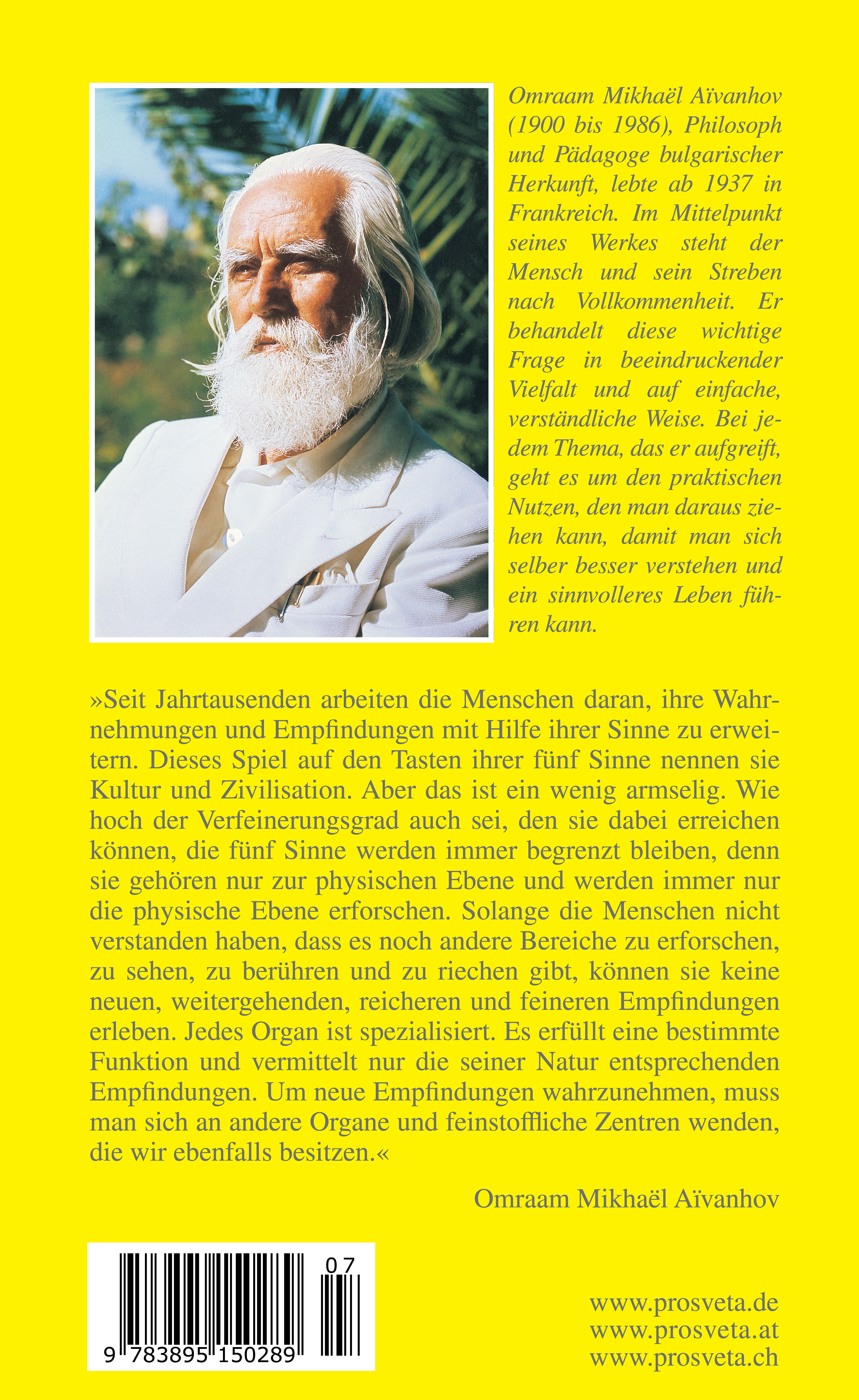Kapitel 1Die menschliche Evolution und die Entwicklung der spirituellen OrganeWir besitzen einen physischen Körper, der sich aus verschiedenen Organen zusammensetzt. Das wissen sogar die kleinen Kinder. Fragt sie, wo sie ihre Augen haben, ihren Mund, ihre Ohren, ihre Nase, ihre kleinen Beine, und sie werden sie euch zeigen. Später lernen sie in der Schule, dass der Mensch fünf Sinne besitzt (das Gesicht, das Gehör, den Geruchs-, den Geschmacks- und den Tastsinn), von denen jeder genau festgelegte Funktionen hat. Zum Beispiel ist die Funktion und die Empfindung des Tastsinns nicht die gleiche wie die des Geschmackssinns oder des Gesichtssinnes usw.Alle Beziehungen des Menschen zur Welt basieren auf den fünf Sinnen. Darum möchte er von ihren Möglichkeiten so viel wie möglich profitieren und vor allem die Empfindungen verstärken, die ihm seine Augen, Ohren und seine Haut usw. verschaffen. Unter diesen Empfindungen sind einige mehr oder weniger notwendig und mehr oder weniger intensiv. Nehmen wir den Geschmackssinn: Wer würde den Reichtum und die Mannigfaltigkeit der Empfindungen dieses Sinnes abstreiten wollen? Vor allem, wenn es sich um eine köstliche Mahlzeit handelt? Und der Tastsinn: Wenn ein Mann und eine Frau sich streicheln, erleben sie dabei Empfindungen größter Intensität. Man sagt sogar, dass das sexuelle Vergnügen die stärksten Empfindungen vermittelt, doch gerade dies ist sehr zweifelhaft. Für die große Mehrheit stimmt das, ja, aber nicht für alle. Der Gesichts- und Gehörsinn mancher Künstler ist mit großer Sensibilität gesegnet. Farben und Töne vermitteln ihnen intensive Eindrücke, viel stärker noch als beim Sexualakt, der sie oft unbeteiligt und kalt lässt.Da die Mehrheit der Menschen noch nicht sehr weit entwickelt ist, kann man sagen, dass der Tastsinn (in den man die Sexualität mit einbeziehen kann) und der Geschmackssinn im Moment die beiden Sinne sind, die die Welt regieren. Das Gesicht, das Gehör und der Geruchssinn nehmen einen weniger großen Platz ein. Es gibt Leute, die durch Düfte, Töne und Farben nicht angesprochen werden, außer wenn ihr Interesse im Spiel ist, wie bei den Tieren, bei denen der Geruchssinn, das Gehör oder die Sehfähigkeit extrem entwickelt sind, weil sie diese zu ihrem Schutz und für die Nahrungssuche brauchen.Ich erzähle euch hier Dinge, die ihr bereits wisst, doch dies geschieht, um eure Aufmerksamkeit auf Schlussfolgerungen zu lenken, die ihr wahrscheinlich noch nie gezogen habt. Seit Jahrtausenden üben sich die Menschen darin, durch den Gebrauch ihrer fünf Sinne ihre Wahrnehmungen und Empfindungen zu steigern und zu vermehren. Dieses Spiel auf den Tasten ihrer fünf Sinne nennen sie Kultur und Zivilisation. Nun, das ist ein wenig armselig. Wie hoch der Verfeinerungsgrad auch sei, den sie dabei erreichen können, die fünf Sinne werden immer begrenzt bleiben, denn sie gehören nur zur physischen Ebene und werden immer nur die physische Ebene erforschen. Die Natur hat noch andere Tasten auf diesem Klavier der Sinne vorgesehen... ja, einen sechsten, siebten und achten Sinn von ganz anderer Intensität, von ganz anderer Kraft. Doch im Moment haben sich die Menschen auf die fünf Sinne beschränkt. Solange die Menschen nicht verstanden haben, dass es noch andere Bereiche zu erforschen, zu sehen, zu berühren und zu riechen gibt, können sie keine neuen Empfindungen erleben, die umfassender, reicher und feiner sind. Wie erklärt man es, dass manche Wesen, die ihren fünf Sinnen keinerlei Nahrung mehr geben, Wahrnehmungen haben, die sie bis zur Ekstase, einer Erweiterung ihres Bewusstseins, einem Empfinden von Erfüllung, Größe und Unendlichkeit führen?Man muss den Menschen begreiflich machen, dass sie großen Enttäuschungen entgegengehen, wenn sie immer noch mehr und noch stärkere körperliche Empfindungen wollen, denn diese Empfindungen sind begrenzt. Warum? Jedes Organ ist spezialisiert. Es erfüllt eine bestimmte Funktion und vermittelt nur die seiner Natur entsprechenden Empfindungen. Um neue E