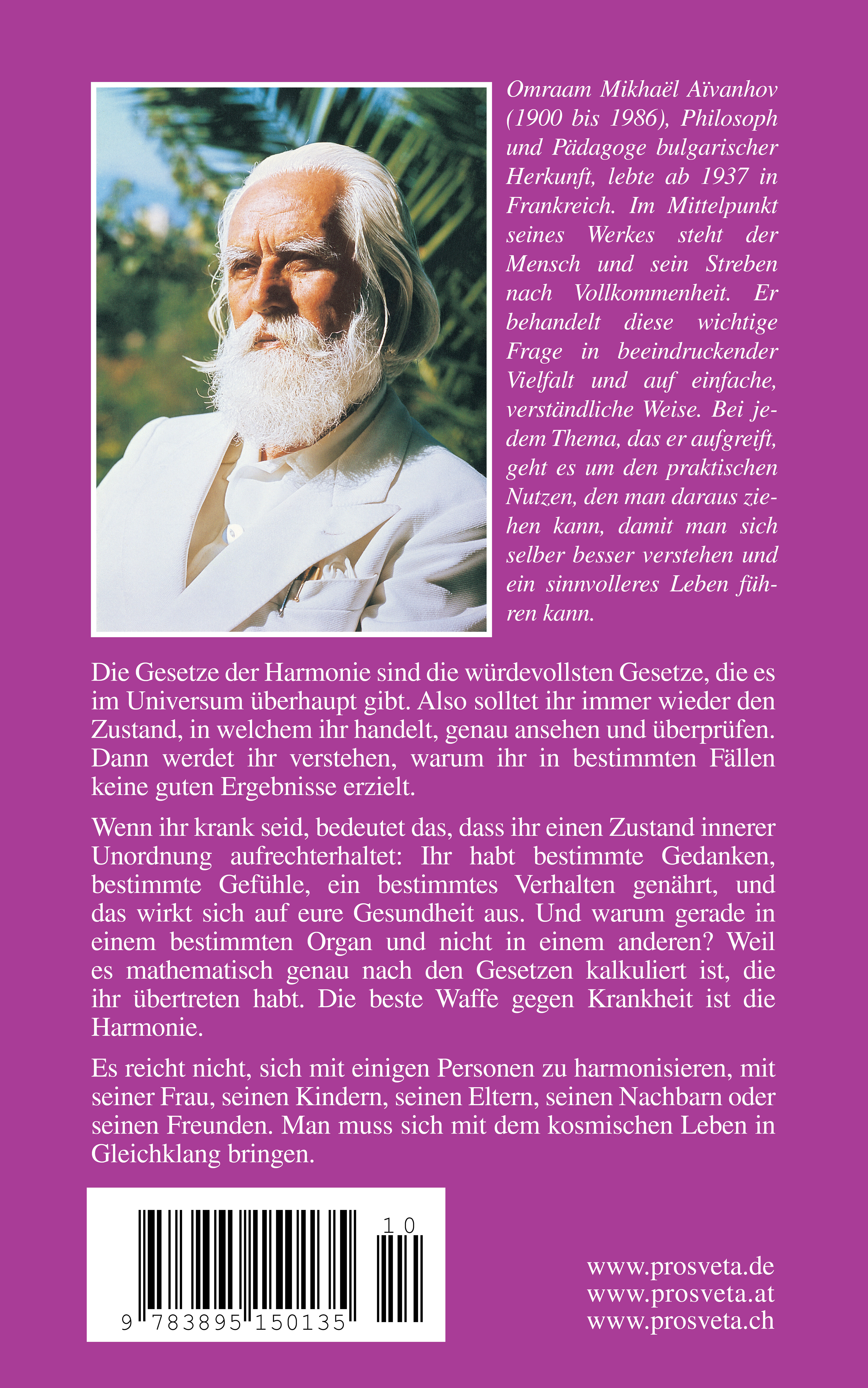Omraam Mikhaël Aïvanhov war ein großer Philosoph, geistiger Meister und Eingeweihter. Als warmherziger, einfühlsamer und humorvoller Lehrer war er ein lebendiges Vorbild, das durch sein selbstloses, zugängliches und brüderliches Verhalten überzeugte. Er strebte an, alle Menschen bei ihrer persönlichen Entwicklung zu begleiten - so wie ein Bergführer seine Kameraden sicher bis auf den höchsten Gipfel führt.Das Gedankengut, das Omraam Mikhaël Aïvanhov verbreitet hat, bietet zahlreiche Methoden und einen klaren, begehbaren Weg zu größerer Vollkommenheit und mehr Lebensglück. In wohltuend einfacher Sprache erklärt er alle wichtigen Zusammenhänge des Lebens und ist gerade bei den Fragen unserer heutigen Zeit wegweisend. Ob es um die Bewältigung des Alltags geht, um die Gesundheit, die Ethik, die Liebe, die Sexualität oder um tiefgründige, philosophische Themen - stets sind seine Antworten überraschend klar und hilfreich.