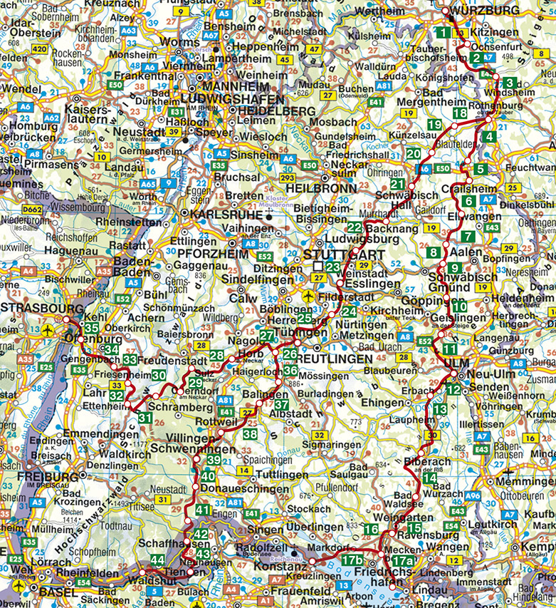 Würzburg - Straßburg - Waldshut-Tiengen - Bodensee. 45 Etappen. Mit GPS-Tracks