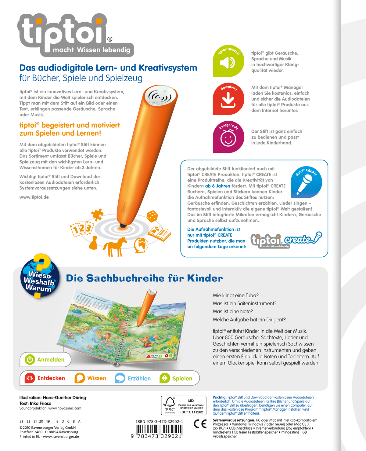 "Musik in einem Buch erleben - dank tiptoi! Die Ravensburger Reihe "Wieso? Weshalb? Warum?" steht von Anfang an für das spielerische Lernen und Entdecken." Hoppkids, 2. Februar 2011