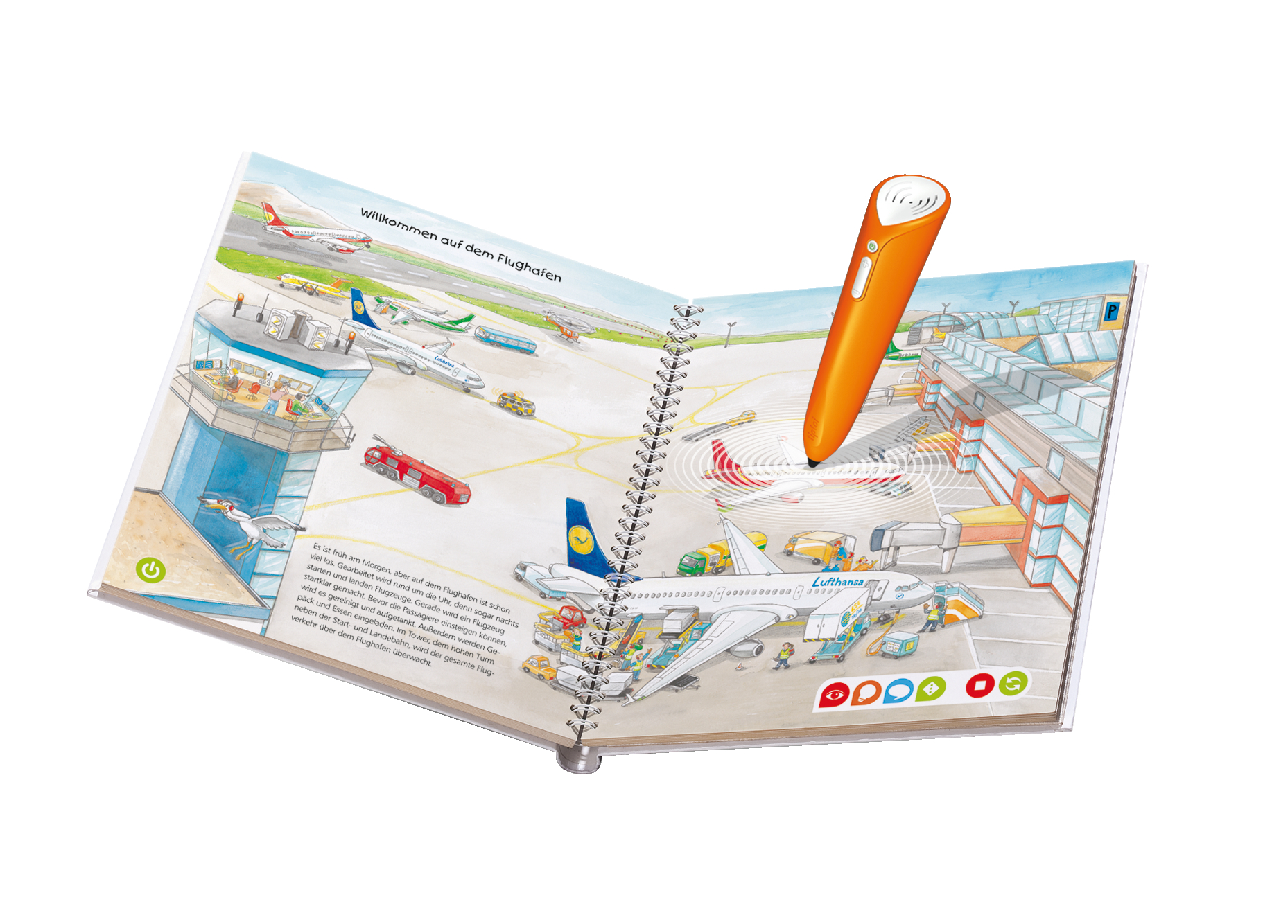 Hier ist der der Blick hinter die Kulissen des Flughafens möglich! Spannende Geräusche und echtes Expertenwissen untermalen den Besuch auf dem Vorfeld, bei der Gepäckförderanlage und sogar im Cockpit. Funktioniert nur mit tiptoi® Stift.