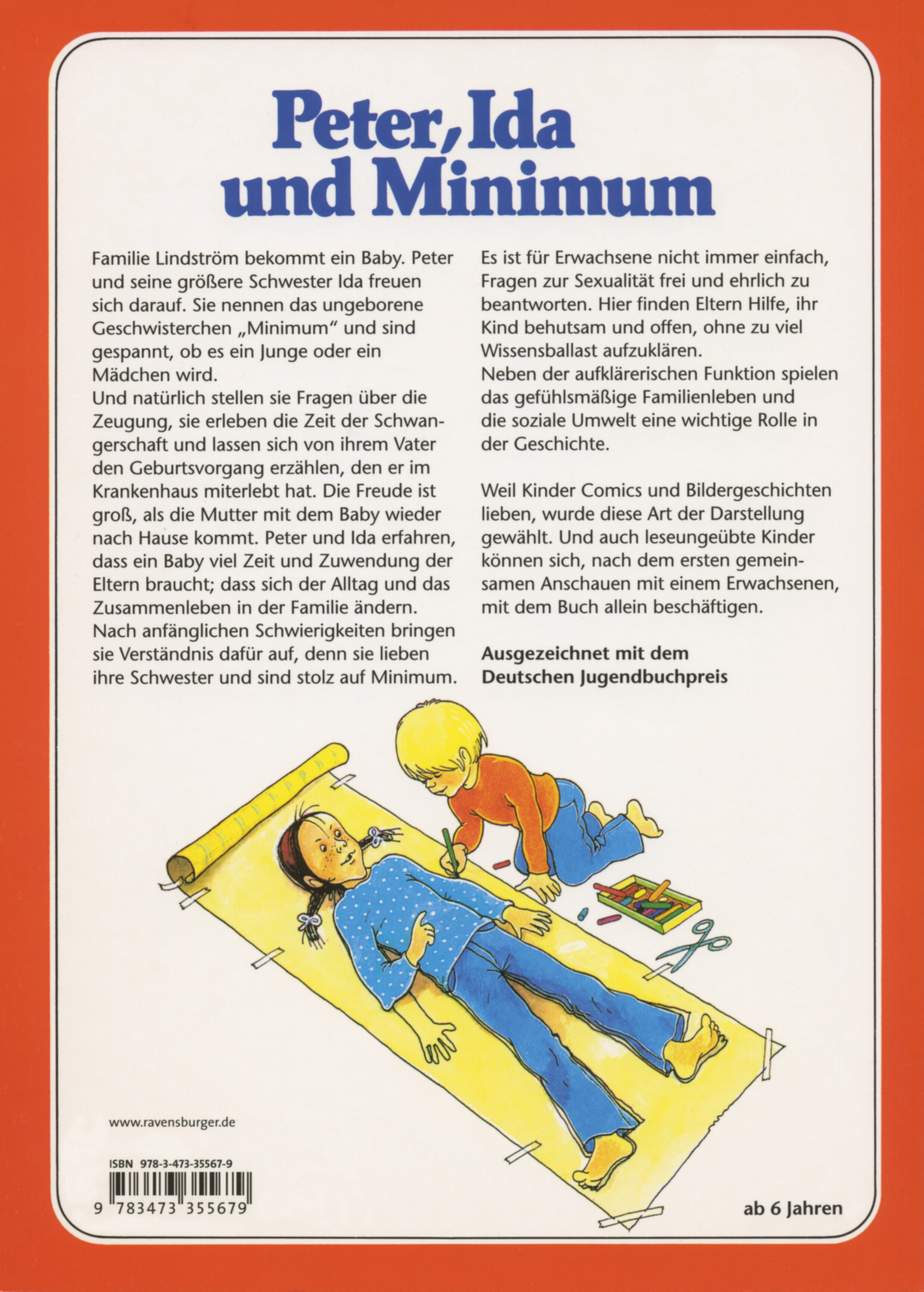 "Minimum", so taufen Peter und Ida ihr Geschwisterchen, das in Mamas Bauch heranwächst, aber noch keinen Namen hat. Dieses erste Aufklärungsbuch erzählt die Geschichte einer Familie, die ein Kind erwartet, aus der Perspektive der Kinder. Wichtige Kinderfragen rund um das Thema Kinderkriegen, Sexualität, Mann und Frau werden in der Handlung dieses Comics verständlich und einfühlsam beantwortet.