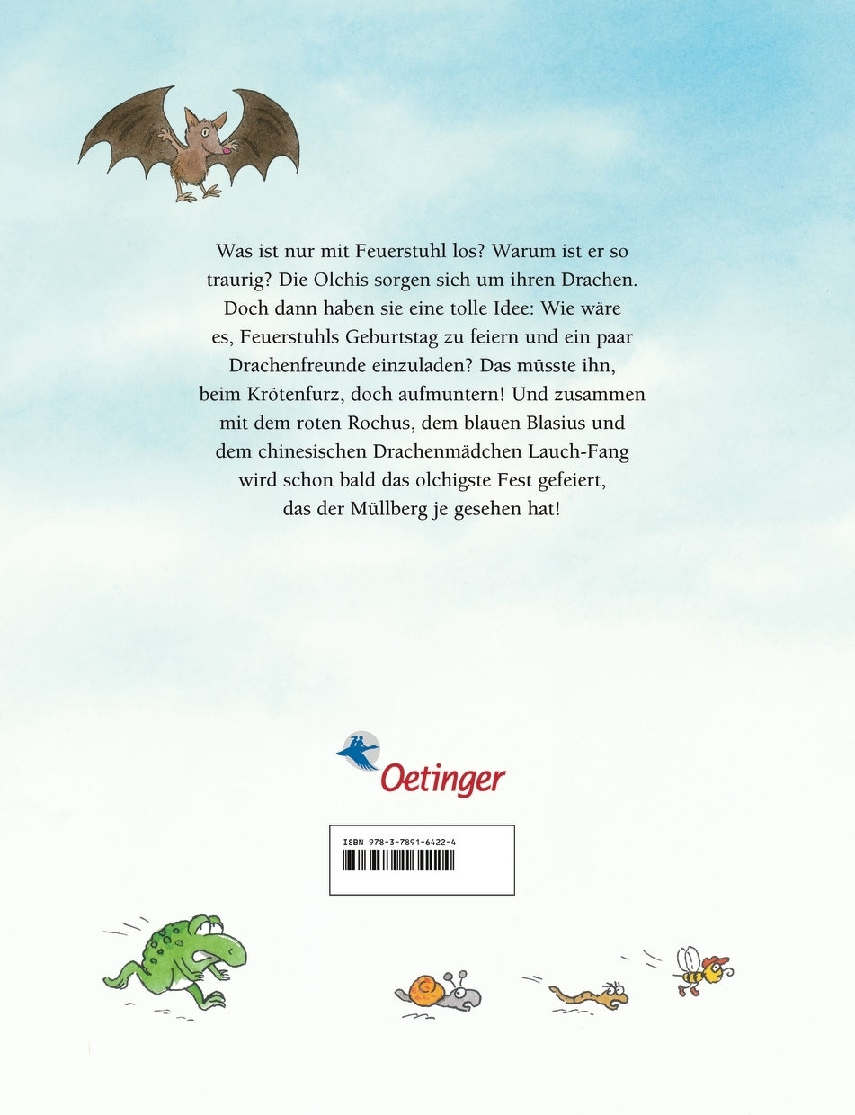Olchig guter Spaß für Drachenfans! Die Olchis machen sich Sorgen um ihren Drachen Feuerstuhl. Warum ist er so traurig? Um ihn aufzuheitern, planen sie ein großes Geburtstagsfest mit allen Drachenfreunden von Feuerstuhl: mit dem roten Rochus, dem blauen Blasius und dem chinesischen Drachenmädchen Lauch-Fang. Und jetzt wird gefeiert, bis die Müllkippe wackelt! Das vierte Olchi-Bilderbuch - für alle Olchi- und Drachenfans und jedes Geburtstagskind!