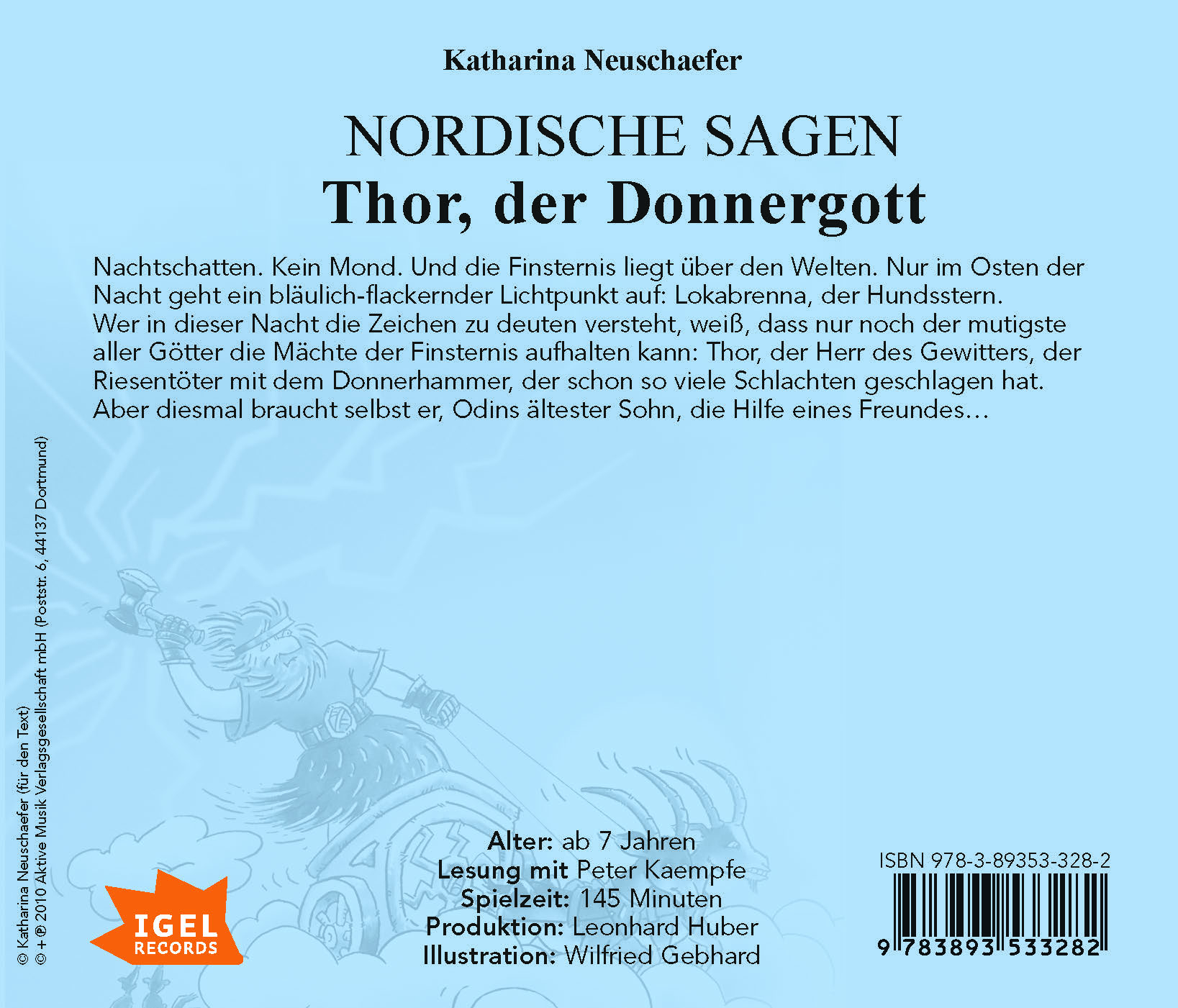 | Schlagworte | Audio-CD, Kassette / Kinder- und Jugendbücher/Kinderbücher bis 11 Jahre • germanisch • Geschichte • Hörbuch für Kinder/Jugendliche • Hörbuch für Kinder/Jugendliche (Audio-CD) • Hörbuch; Hörspiel für Kinder/Jugendliche • Hörbuch; Märchen/Sagen • Märchen/Sagen; Kinder-/Jugendliteratur • Märchen/Sagen; Kinder-/Jugendliteratur (Audio-CDs) • Mythologie • nordisch • Nordische Sagen • Sagen • Thor |