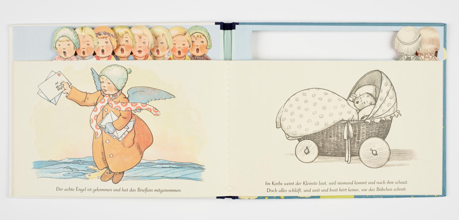 Über jeder Seite sitzt ein konturgestanztes Engelchen. Die liebevoll nostalgischen Bilder von Else Wenz-Viëtor bringen Kindern und Erwachsenen noch heute den Zauber der Weihnachtszeit nahe.