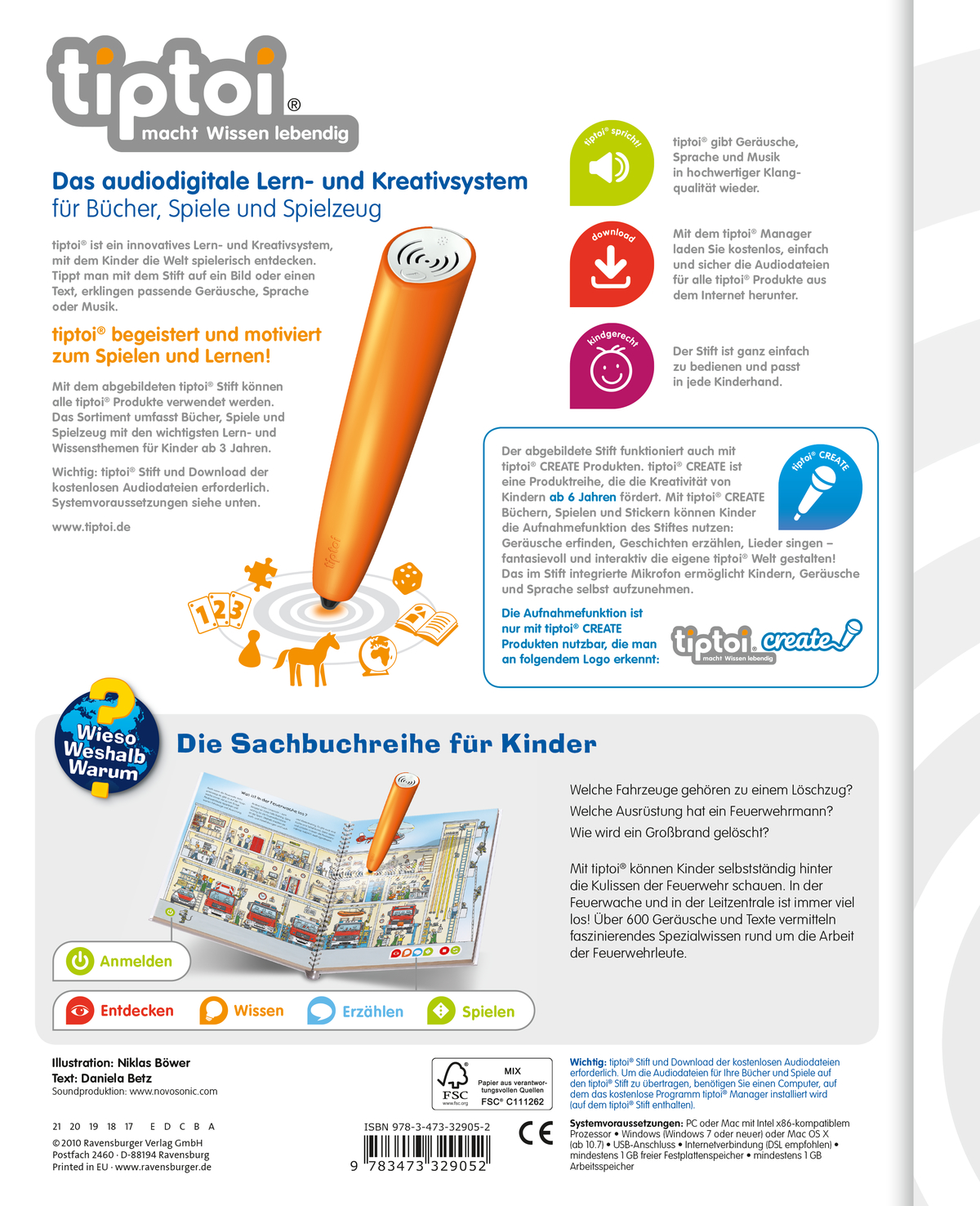 Sirenen heulen, Feuerwehrautos brausen zum Einsatz, laute Kommandos ertönen - mit tiptoi® wird das faszinierende Thema Feuerwehr zu einem besonderen und interaktiven Spektakel!