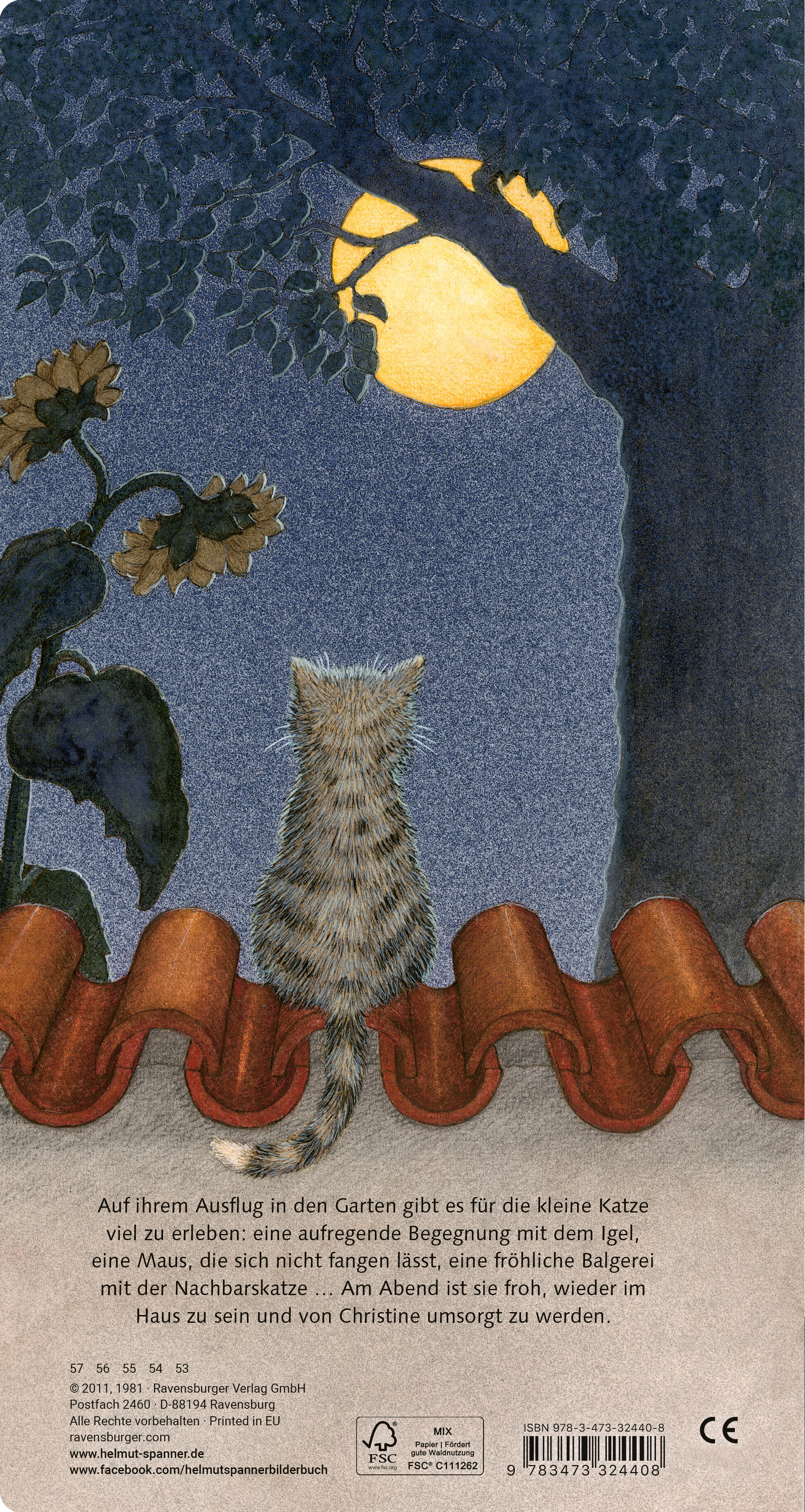 Die kleine Katze macht einen Ausflug in den Garten und erlebt viele kleine Abenteuer: Sie begegnet einem stacheligen Igel und besucht ihren Freund, den Hasen. Sie jagt eine Maus, die sich nicht fangen lässt, und rettet sich vor dem Nachbarshund aufs Dach. Am Abend ist sie froh, wieder im warmen Haus zu sein. Eine kleinschrittig erzählte erste Vorlesegeschichte, optimal abgestimmt auf die Wahrnehmungsfähigkeiten und die emotionale Entwicklung der Kleinsten.Dieses Buch ist ein zeitloser Klassiker im Kinderzimmer und begeistert seit Jahrzehnten Kinder und Erwachsene.