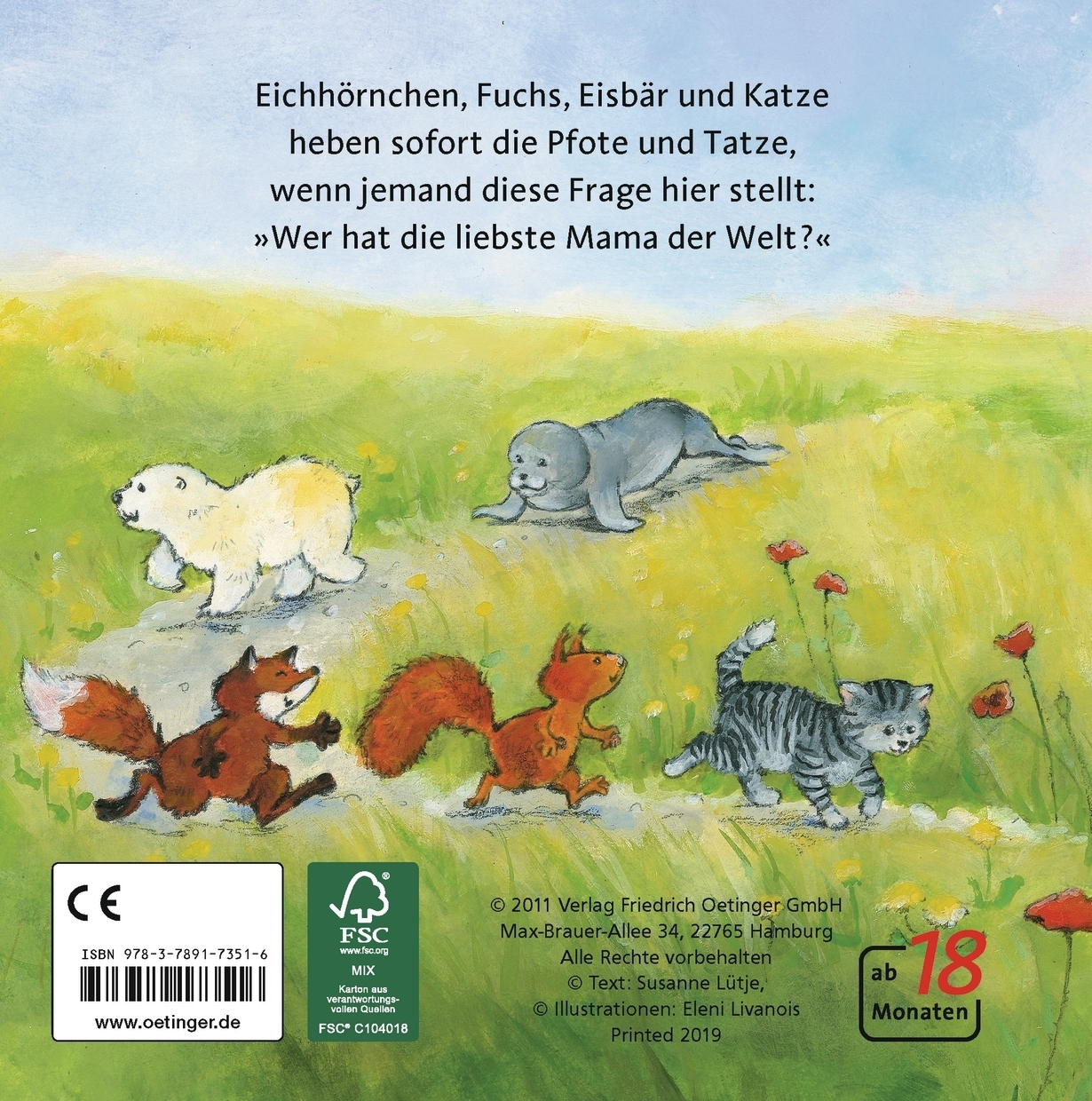 | Schlagworte | ab 2 Jahren • Abendgeschichte • Antolin (1. Klasse) • Antolin 1. Klasse • Bilderbuch • Der liebste Papa der Welt • draußen • Einschlafen • Entspannend • Familie • Frühling • Frühling Bilderbuch • Frühlingswiese • GedichteVerseReime • gereimtes Pappbilderbuch • Geschenkbuch Baby • Geschenkbuch Mama • Geschenke für Frauen • Geschenk Muttertag • Geschenk Schwangerschaft • geschenk werdende mama • gute Nacht • Gutenachtgeschichte • Gute Nacht Geschichten • Gutenachtgeschichte Tiere • Idylle • Kinder • Kinderbuch • Kinderbuch ab 1 • Kinderbuch ab 2 • kinderbücher ab 2 • Kinderreime • Kinder unter 3 • Kuscheln • Liebe • Liebhaben • Lieblingstiere • Mama • Mutter • Mutter; Bilderbuch • Mutter; Bilderbuch (Unzerr.) • Muttertag • Muttertagsgeschenk • Natur • Pappbilderbuch • Papp-Bilderbuch • Pappbilderbuch ab 1 • Pappbilderbuch Tierkinder • Reime • Schlafengehen • Tier-Bilderbuch • Tierbilderbuch (unzerr.) • Tier-Bilderbuch (unzerr.) • Tiere • Tiere; Bilderbuch • Tierkinder • Trösten • Vorlesebuch • Vorlesen |