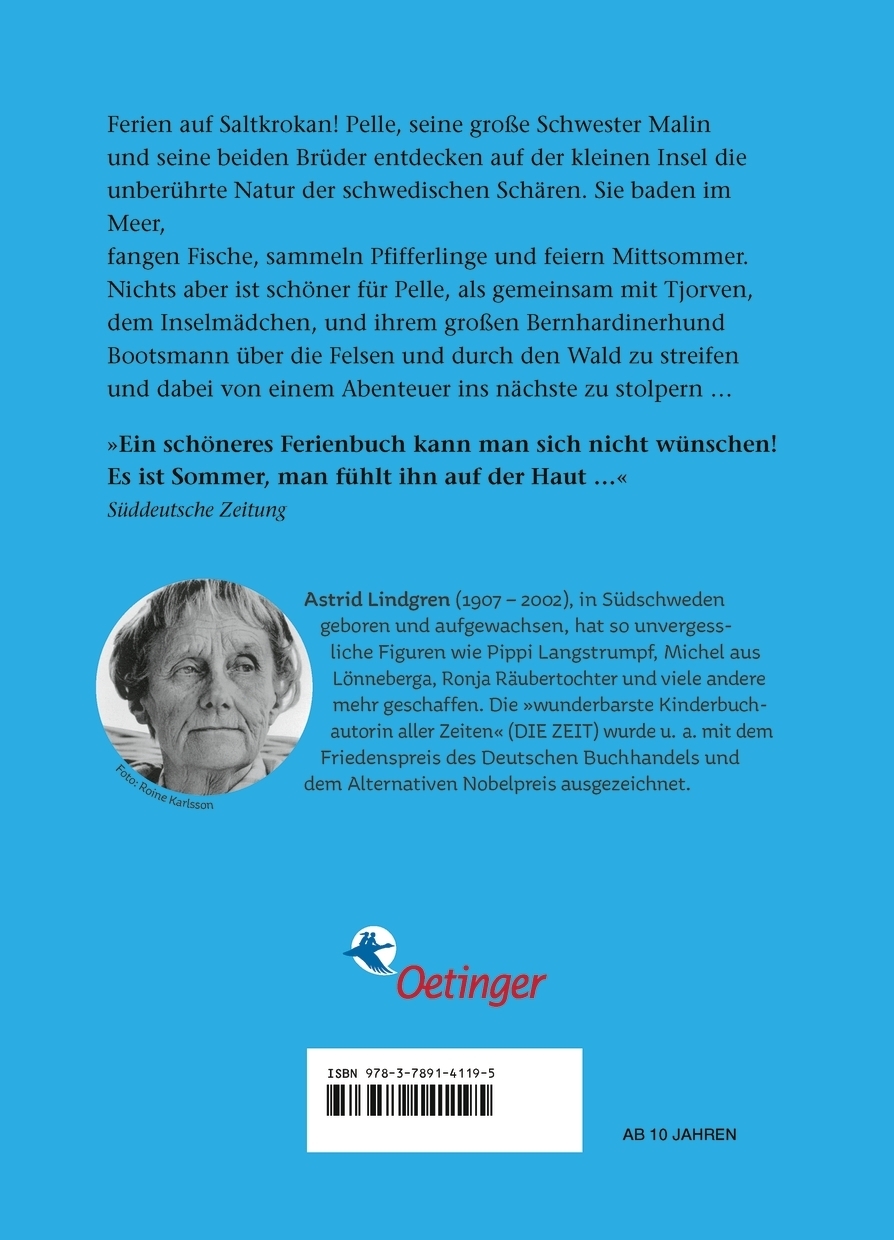 lt;p>Ferien auf Saltkrokan! Pelle, seine große Schwester Malin und seine beiden Brüder entdecken auf der kleinen Insel die unberührte Natur der schwedischen Schären. Sie baden im Meer, fangen Fische, sammeln Pfifferlinge und feiern Mittsommer. Nichts aber ist schöner für Pelle, als gemeinsam mit Tjorven, dem Inselmädchen, und ihrem großen Bernhardinerhund Bootsmann über die Felsen und durch den Wald zu streifen und dabei von einem Abenteuer ins Nächste zu stolpern ...