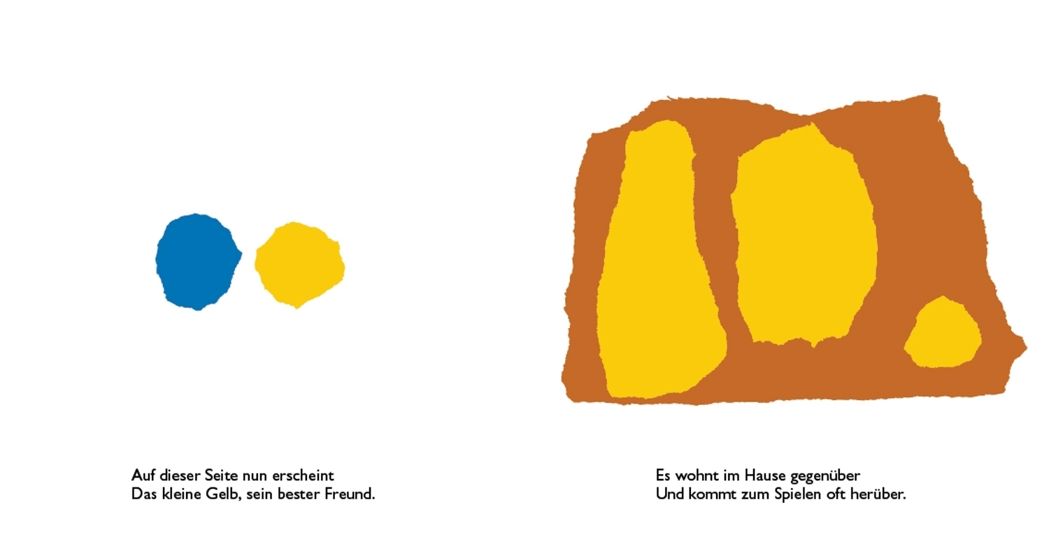 Es war einmal ein kleines Blau. Sein bester Freund ist gelb. Und wenn sie sich umarmen, wird es grün. Leo Lionni erzählt in seinem Bilderbuchklassiker die Geschichte von dem kleinen Blau, das ganz viele bunte Freunde hat. Am liebsten ist ihm das Gelb - und als Mama Blau zum Einkaufen geht, schleicht es sich heimlich hinaus, um es zu holen. Aber wo ist das kleine Gelb?