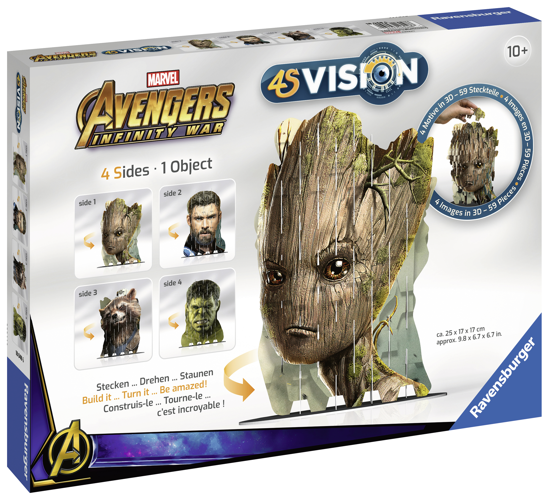 Jetzt das neue 4S Vision Steckspiel von Ravensburger entdecken! Die einzelnen Kartonteile lassen sich zu einem großen, faszinierenden 3D-Gesteck zusammenfügen. Hinter jedem Bauteil steckt eine eigene Geschichte. Durch das spannende Steck-Prinzip entstehen vier verschiedene Ansichten in einer dekorativen Figur. Wechselnde Blickwinkel sorgen so für wechselnde Motive. Spiel-Inhalt: 4S Vision Stanzteile aus Karton, Bodenplatte, Anleitungsheft. Spieldauer: beliebig. Spieleanleitung in deutsch, niederländisch, spanisch, französisch, italienisch, englisch. Anzahl Puzzleteile: 21.