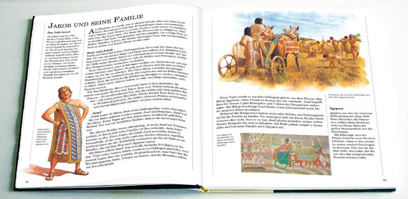 - Was steht in der Bibel zum Anfang der Welt? - Wie war das mit Mose und dem Auszug aus Ägypten? - Wann wurde Jesus geboren? Das große illustrierte Sachbuch zur Bibel gibt Antworten auf diese und viele andere Fragen. Auf der spannenden Reise durch die biblische Geschichte lassen großformatige Bilder, Karten, Fotos und informative Sachtexte vergangene Epochen lebendig werden. So entdecken junge Leser die Welt der Bibel und können ihre Erzählungen besser verstehen. Aus dem Inhalt: Einführung • Im Anfang • Die große Flut • Abraham: Vater einer Nation • Abraham: ein Nomade in Kanaan • Jakob und seine Familie • Das Volk Israel in Ägypten • Die Bundeslade in der Wüste • Anspruch auf das Land • Landwirtschaft in Kanaan • Die großen Könige Israels • Jerusalem unter der Regierung König Salomos • Das geteilte Königreich • Von Assyrien besiegt • Das Königreich Juda • Babylon und die Juden • Eine Welt verändert sich • Jerusalem unter römischer Besatzung • Jesus wird geboren • Nazaret • Jesus verkündigt • Kafarnaum zur Zeit Jesu • Die Kreuzigung Jesu • Jerusalem zur Zeit des Pilatus • Die Frohe Botschaft über Jesus • Der Hafen von Cäsarea • Die Missionsreisen des Paulus • Das Christentum im Römischen Weltreich • Orts- und Namenregister