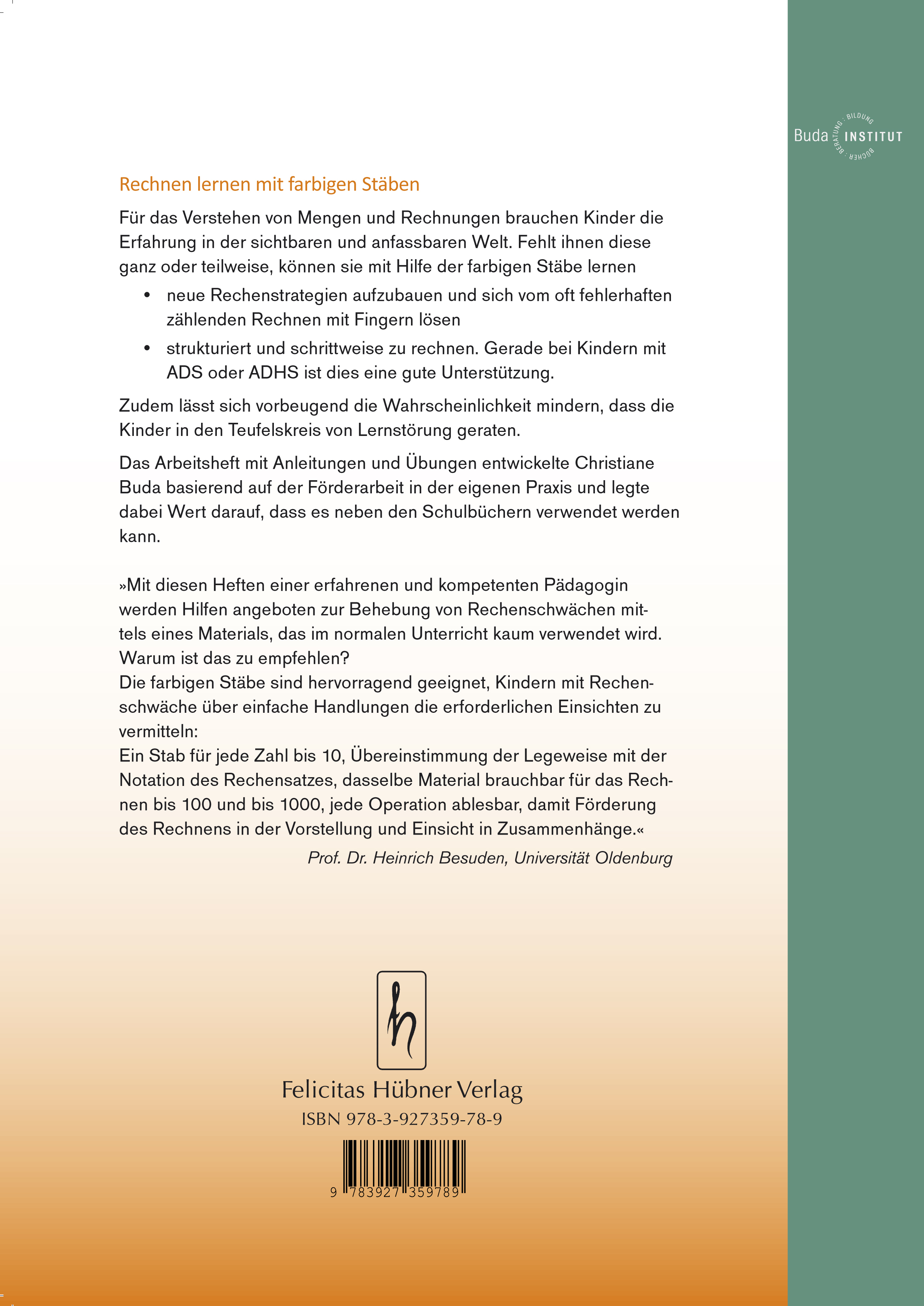 Für das Verstehen von Mengen und Rechnungen brauchen Kinder die Erfahrung in der sichtbaren und anfassbaren Welt. Fehlt ihnen diese ganz oder teilweise, können sie mit Hilfe der farbigen Stäbe lernen, neue Rechenstrategien aufzubauen und sich vom oft fehlerhaften zählenden Rechnen mit Fingern lösen und lernen, strukturiert und schrittweise zu rechnen. Gerade bei Kindern mit ADS oder ADHS ist dies eine gute Unterstützung.