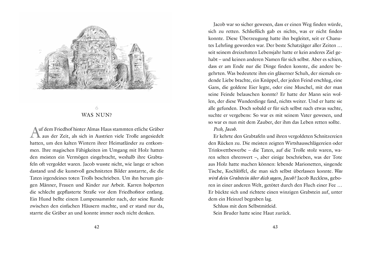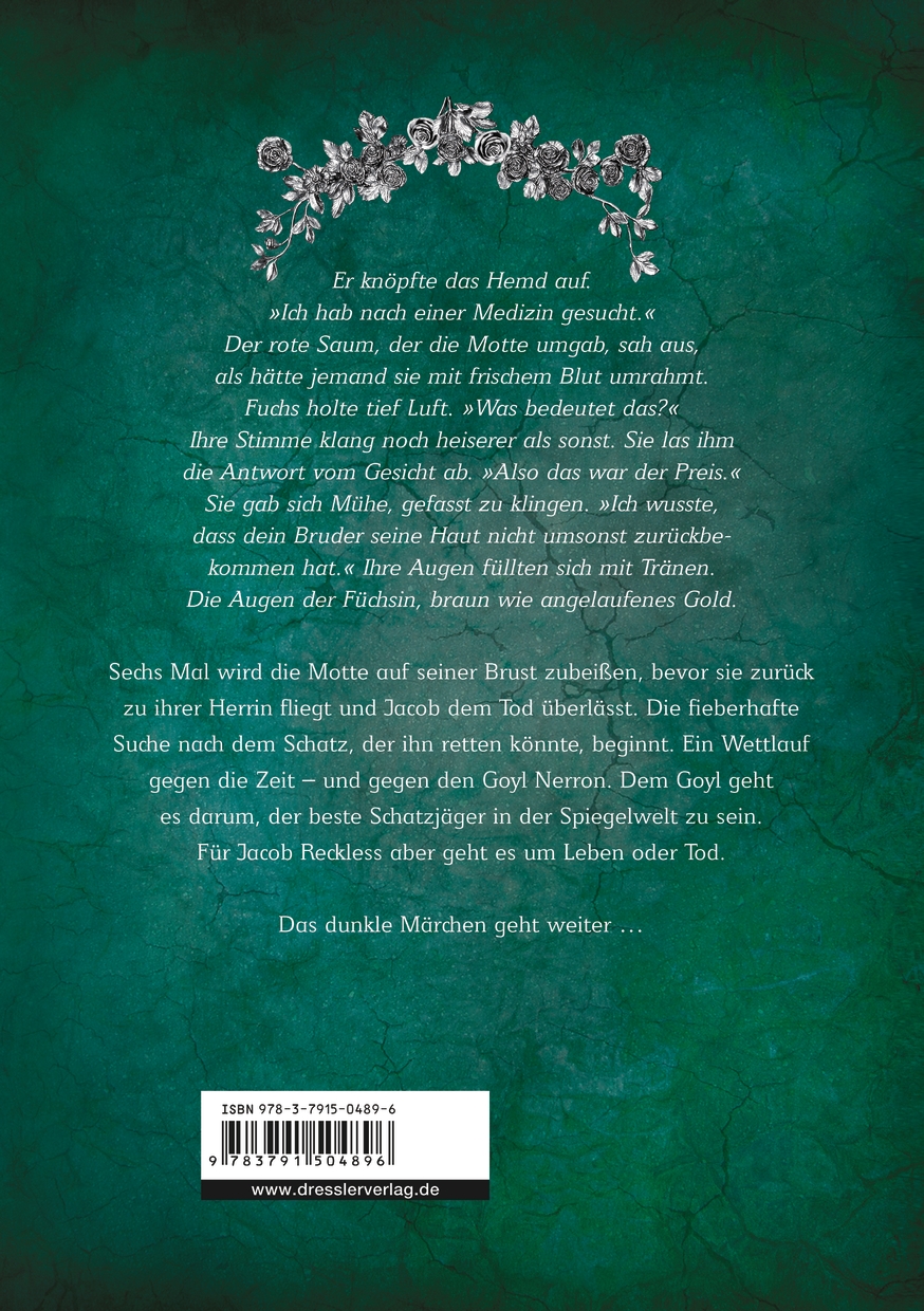 Jacob Reckless’ düstere Abenteuer gehen weiter. Seinen Bruder Will hat er retten können, doch der Preis war hoch. Wird sich die Motte auf seiner Brust, Zeichen des Feenfluchs, lösen und zu ihrer Herrin fliegen, ist Jacob dem Tode geweiht. Ein Wettlauf gegen die Zeit beginnt – und ein Wettkampf mit dem Goyl Nerron um den einen Schatz. Er kann die Welt auf der anderen Seite des Spiegels ins Verderben stürzen – und ist doch Jacobs einzige Rettung. Gemeinsam mit dem Mädchen Fuchs kämpft Jacob nicht nur um sein Leben. Der zweite Band der Spiegelwelt-Reihe von Bestseller-Autorin Cornelia Funke – eine verzauberte Sprach- und Märchenwelt!