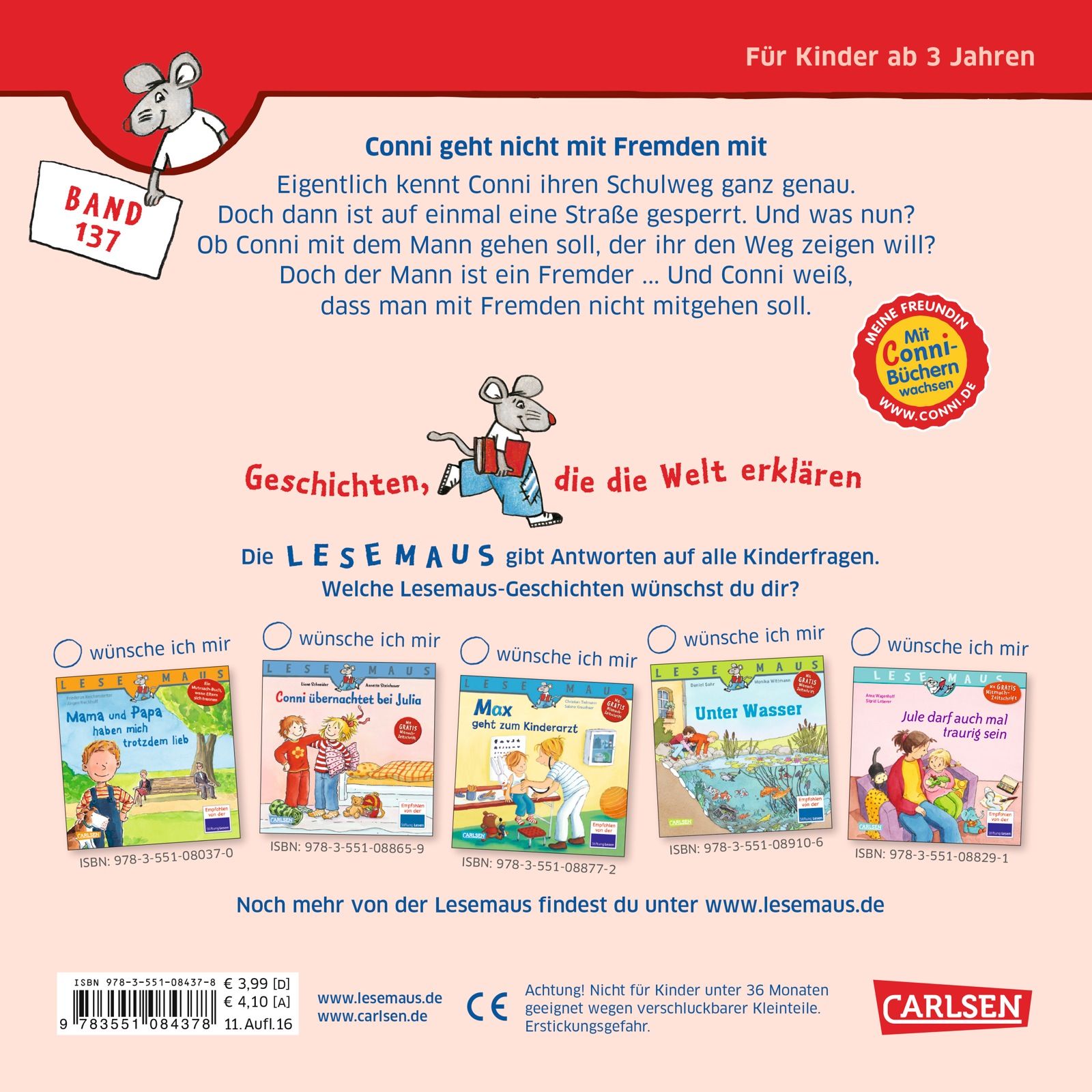 Doch der Mann ist ein Fremder ... Und Conni weiß, dass man mit Fremden nicht mitgehen soll. Und dass es richtig ist, laut "Nein" zu sagen, wenn man etwas nicht will.
