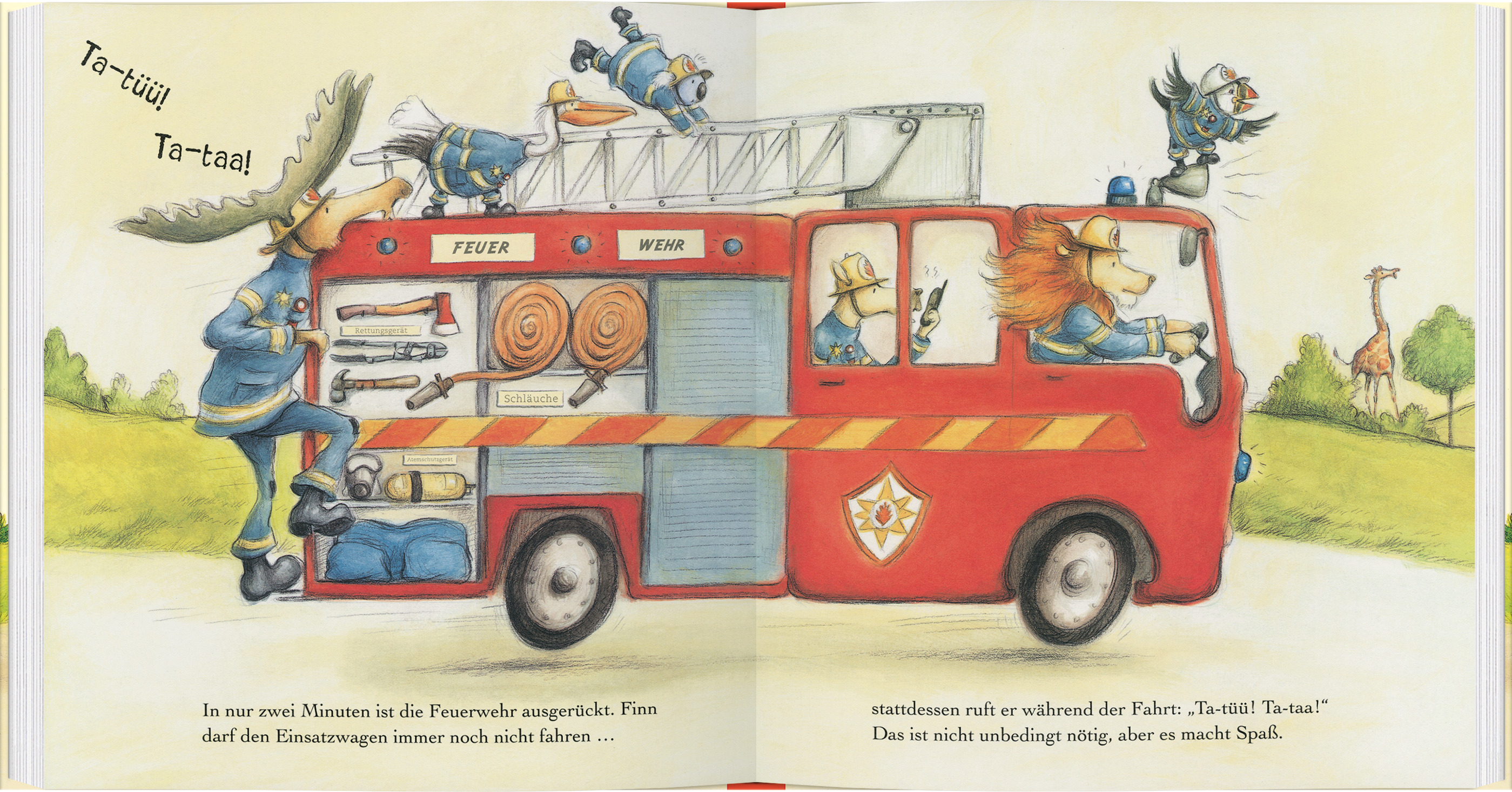 Kleine Leser lernen in dieser humorvollen Bilderbuchgeschichte die Arbeit der Feuerwehr kennen und erleben spannende Rettungseinsätze.