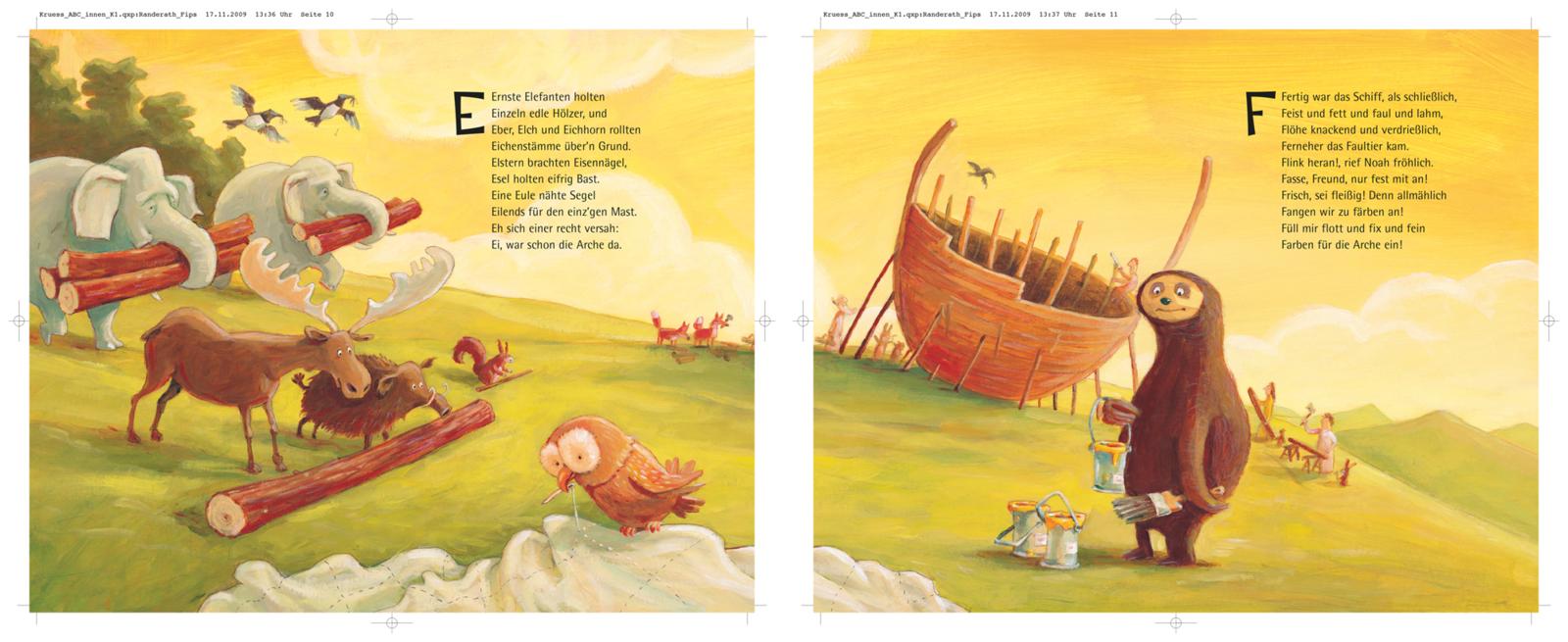 lt;p>Eber, Elch und Eichhorn rollten Eichenstämme übern Grund. Elstern brachten Eisennägel, Esel holten eifrig Bast. Eine Eule nähte Segel Eilends für den einz´gen Mast. Alle, alle sind gekommen und bauen mit an der Arche: von A wie Affe bis Z wie Zottelziege. Der Klassiker von James Krüss, neu illustriert von Günther Jakobs jetzt als stabiles Pappbilderbuch. James Krüss, geboren 1926 auf Helgoland, ist einer der großen Kinderbuchautoren. Für sein Werk erhielt er zahlreiche Auszeichnungen, u. a. ist er Träger des deutschen Jugendbuchpreises und der Hans-Christian-Andersen-Medaille. Der Autor verstarb 1997 auf Gran Canaria. Günther Jakobs (Jahrgang 1978) studierte Illustration an der FH Münster. Er arbeitet seit seinem Abschluss erfolgreich als Illustrator für verschiedene Verlage im Bereich Kinderbuch, Sachbuch und Geschenkbuch.