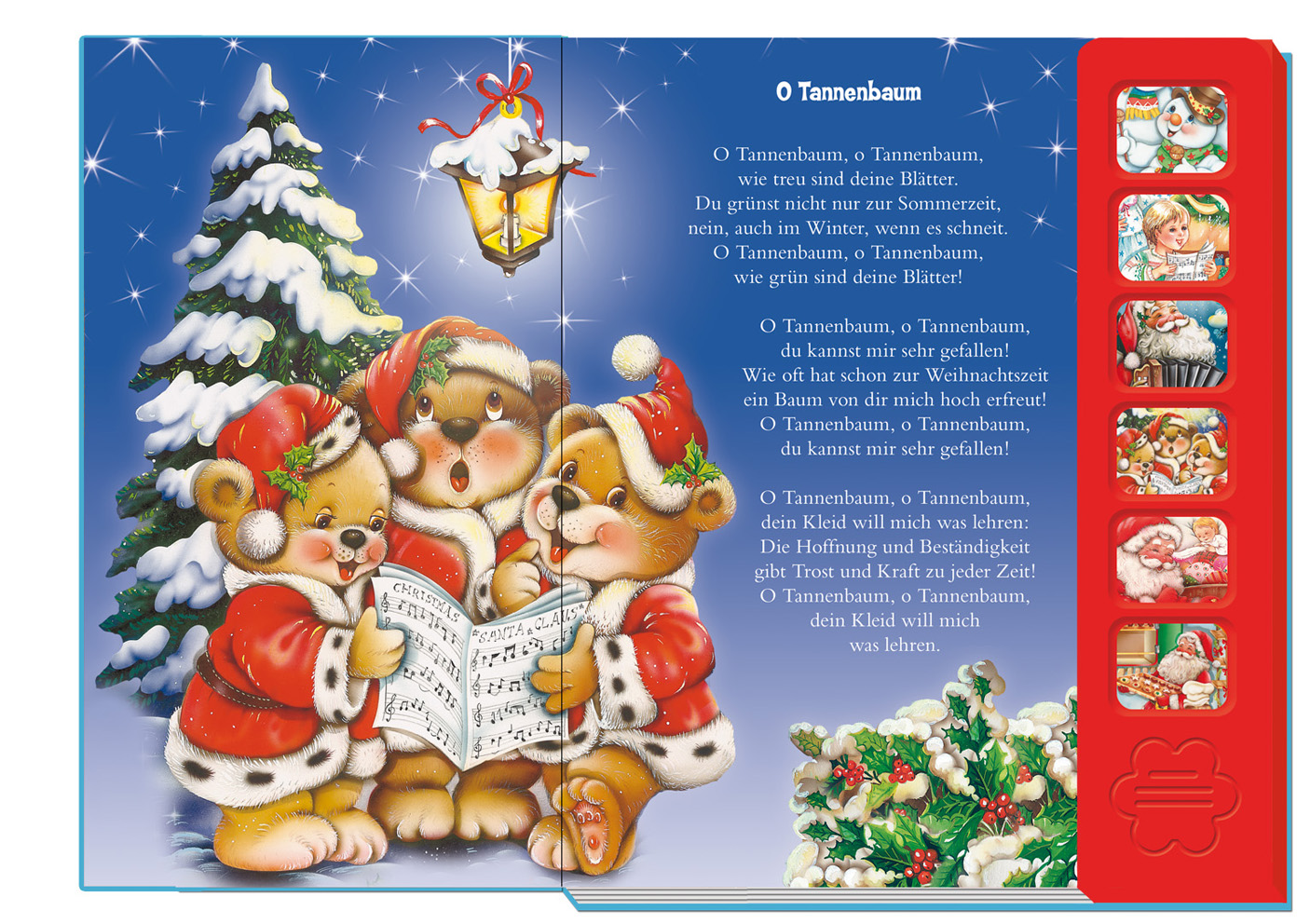 | Schlagworte | Bilderbuch (m. Soundeffekten) • Bilderbuch (Tonmodulen) • Geschenk • Kinderbuch • Liederbuch • Nikolaus • Papp-Bilderbuch • Pappenbuch • Soundbuch • Weihnachten • Weihnachtsbuch • Weihnachtslieder • Weihnachtslieder; Bilderbuch • Weihnachtslieder; Bilderbuch (unzerr.) |