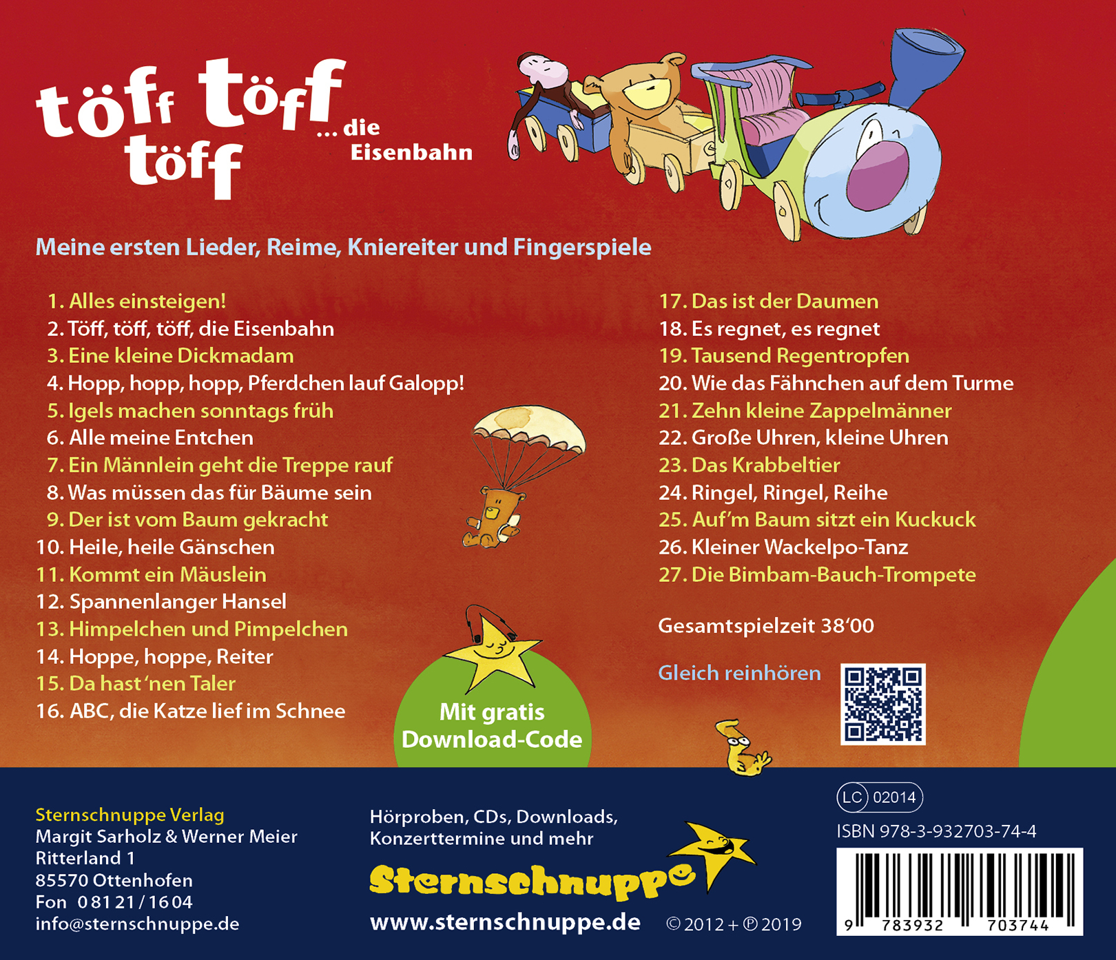 Dazu gehört auch ein liebevoll illustriertes Büchlein mit allen Texten. Außerdem gibt's für alle, die sehen wollen, wie das mit dem Fingerspiel gleich nochmal war, lustige Filme auf der Sternschnuppe Homepage.