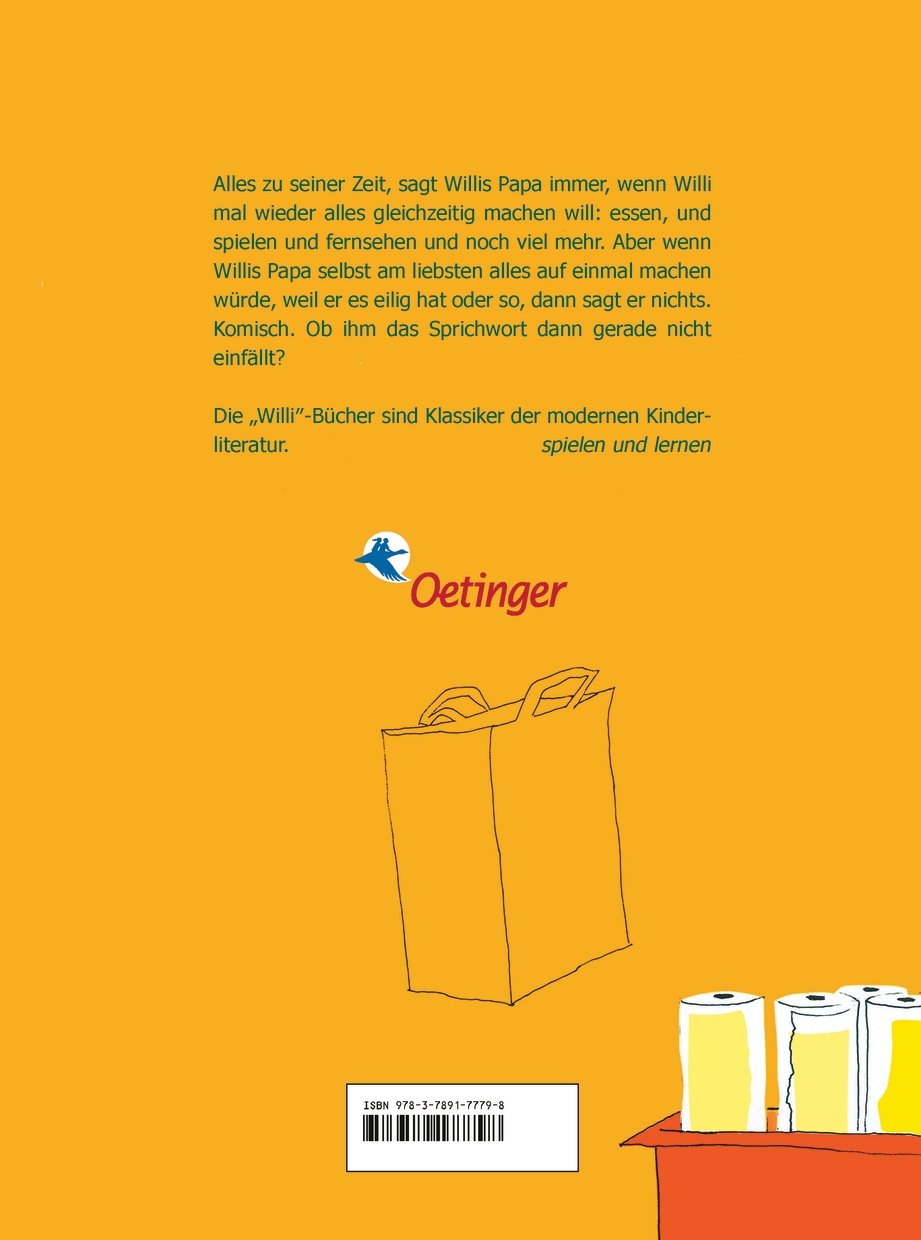 Alles zu seiner Zeit, sagt Willis Papa immer, wenn Willi mal wieder alles gleichzeitig machen will: essen und spielen und fernsehen und noch viel mehr. Aber wenn Willis Papa selbst am liebsten alles auf einmal machen würde, weil er es eilig hat oder so, dann sagt er nichts. Komisch. Ob ihm das Sprichwort dann gerade nicht einfällt?