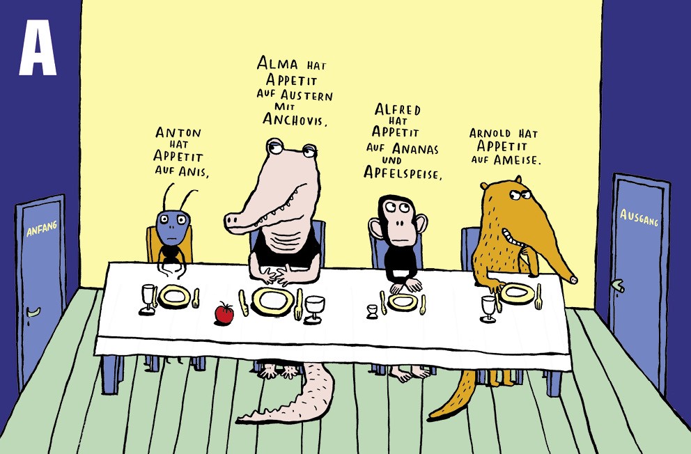 Ein ABC voller skurrilen Gestalten und ebensolchen Texten zum Schmunzeln - und natürlich zum Erlernen des Alphabets.