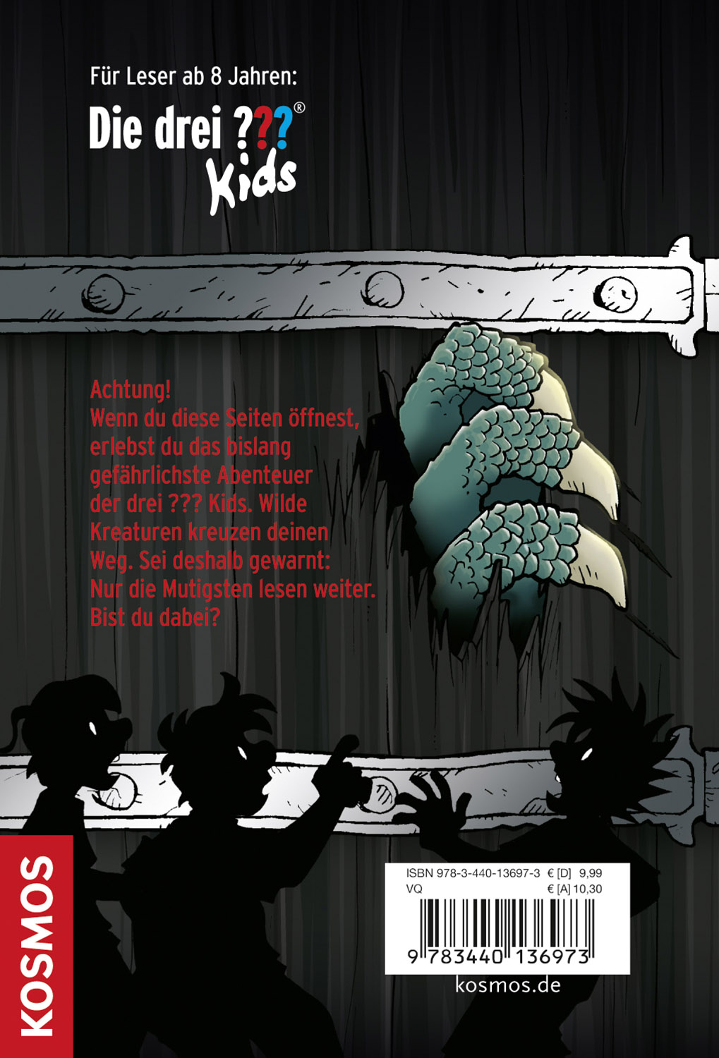 "Die drei ??? Kids" finden ein Buch, dessen Seiten verschlossen sind, weil angeblich ein Fluch auf ihnen liegt. Von so etwas lassen sich Justus, Peter und Bob natürlich nicht abhalten. Mutig öffnen sie eine Seite nach der anderen und erleben Unglaubliches: Woher kommen die wilden Kreaturen, die ihren Weg kreuzen? Was bedeuten die verschlüsselten Aufzeichnungen? Handelt es sich wirklich um das Forscherhandbuch eines Archäologenteams, das an einem geheimen Ort wertvolle Schätze aus der Urzeit ausgräbt? Nur eins ist klar: Wer in dem gefährlichen Buch liest, ist seines Lebens nicht mehr sicher ...