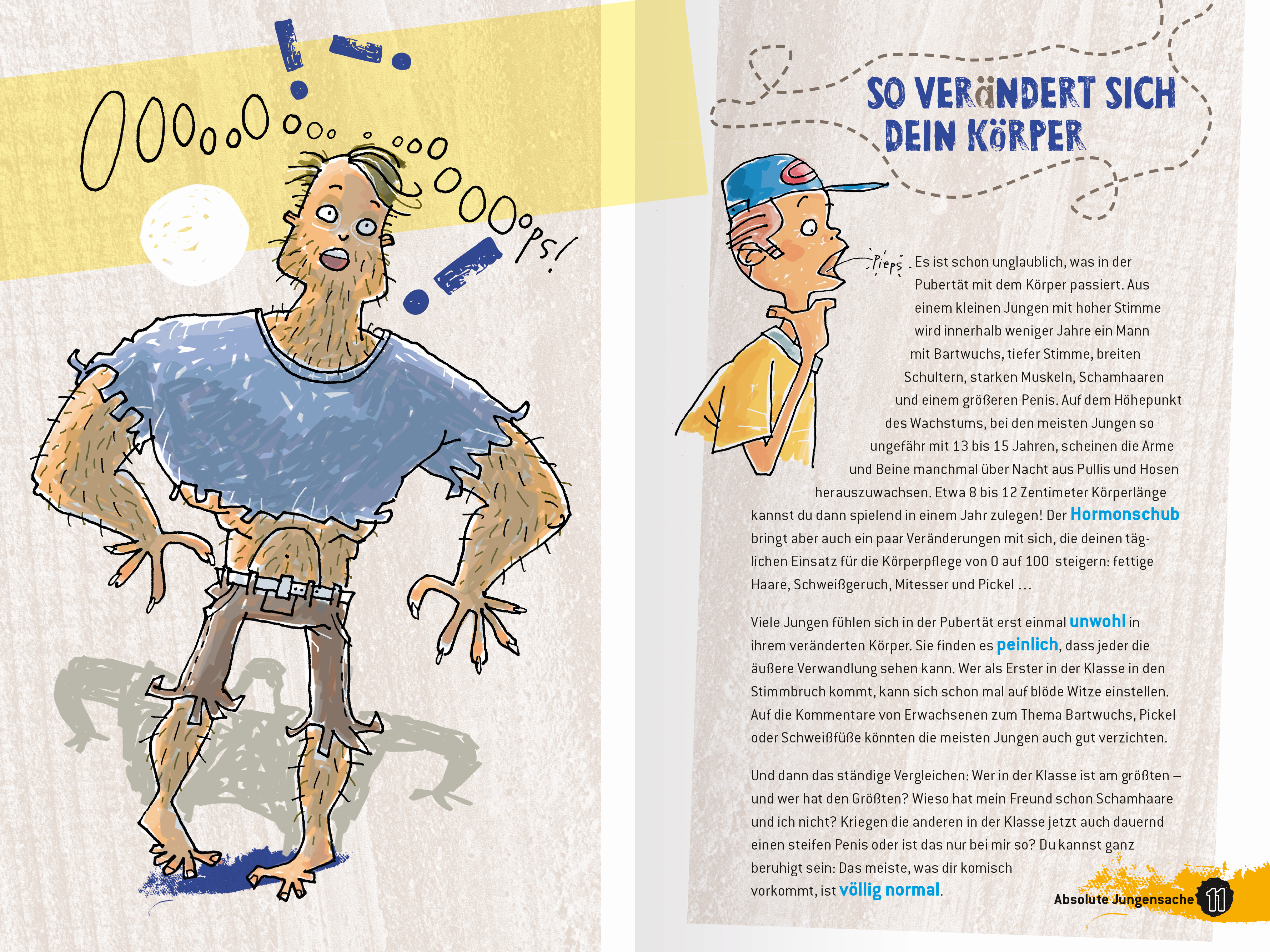 Die Pubertät bringt eine ganze Reihe von körperlichen und seelischen Veränderungen. Dieses Begleitbuch klärt Jungs über den bevorstehenden Wandel auf und beantwortet Fragen rund um die Themen Körper, Bartwuchs, Hygiene und Körperpflege, Mädchen, Liebe und Sex, Rechte und Pflichten. Witzige Illustrationen und eine altersgerechte Sprache fördern in diesem Aufklärungsbuch einen offenen und lockeren Zugang selbst zu schwierigen Themen.